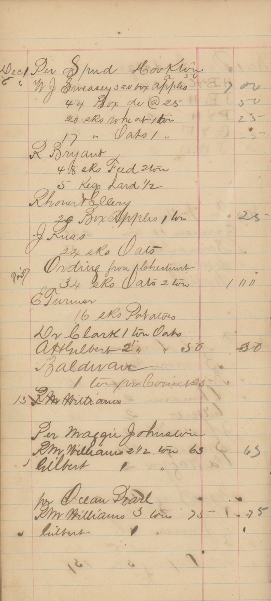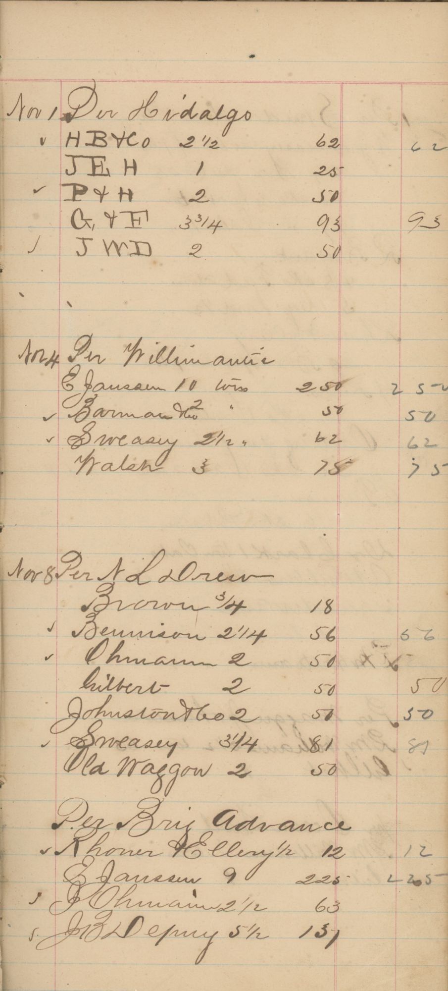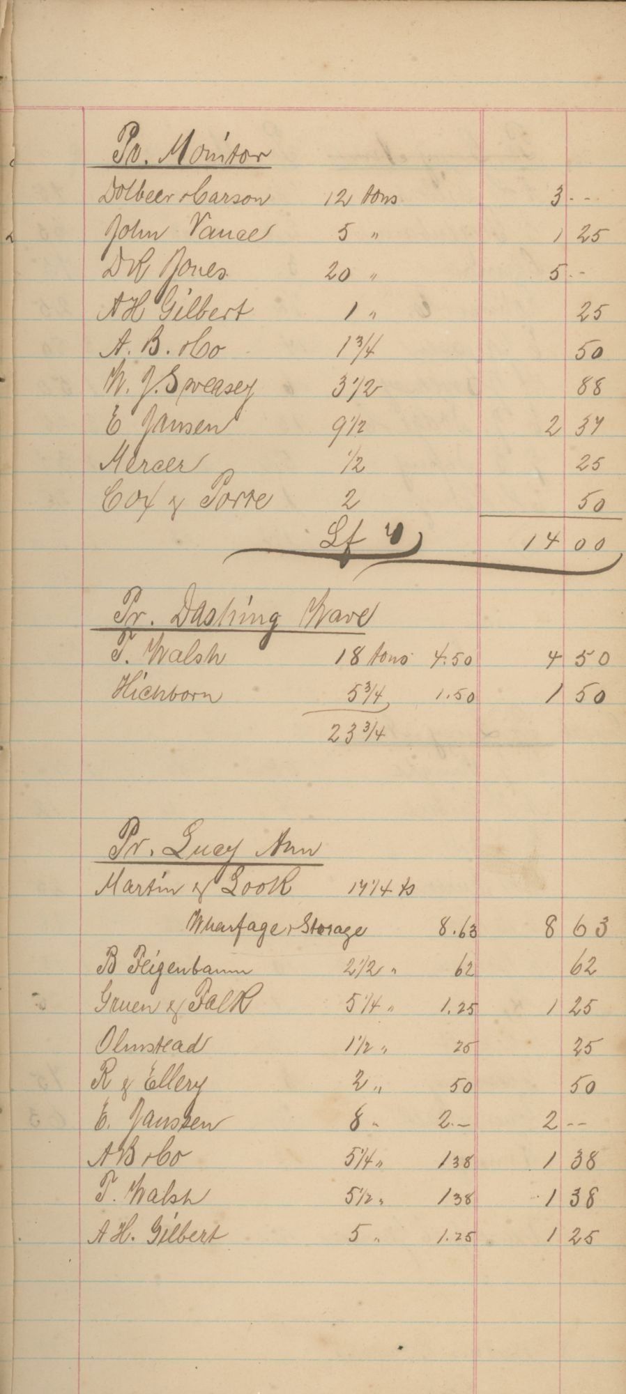 Wharfage Account Ledger for Humboldt Bay, Eureka, California, 1868–1873