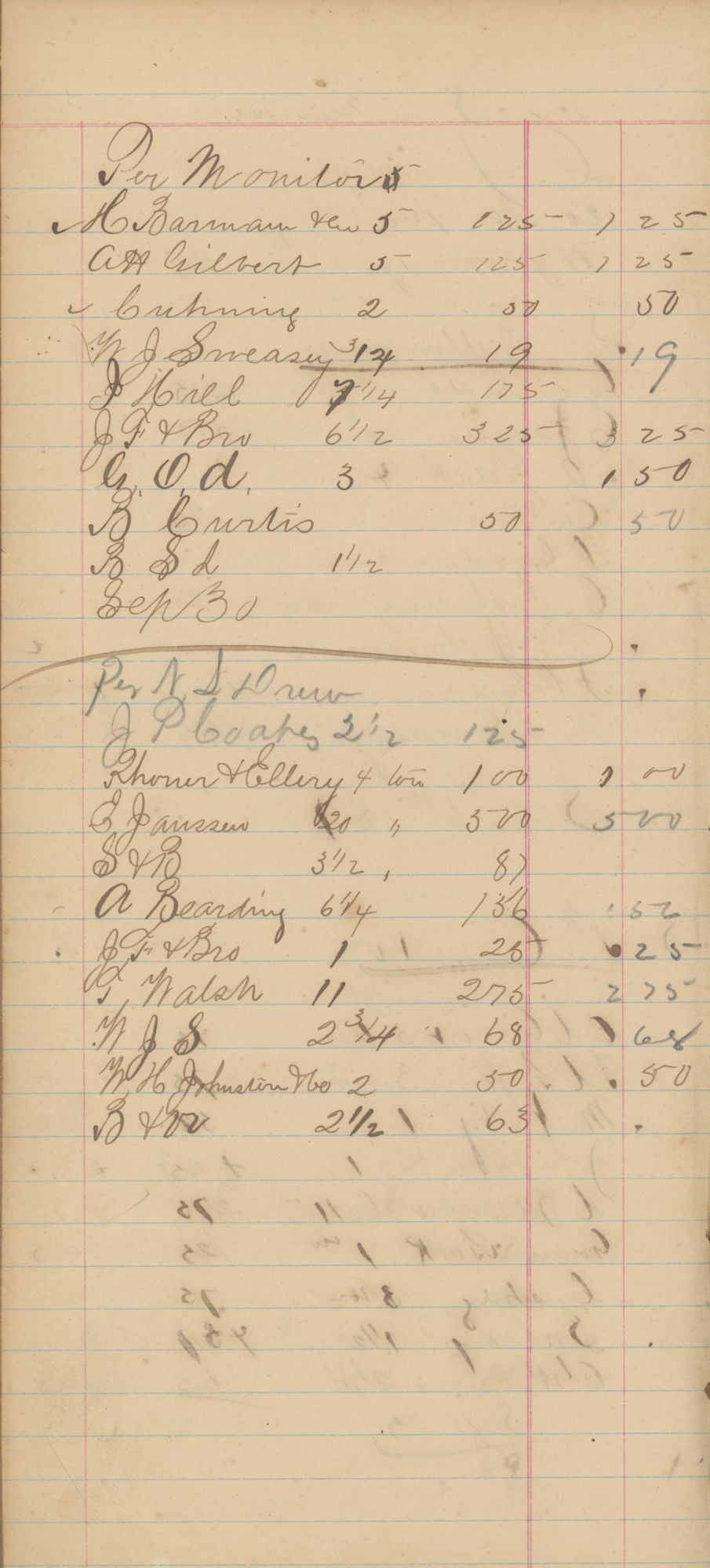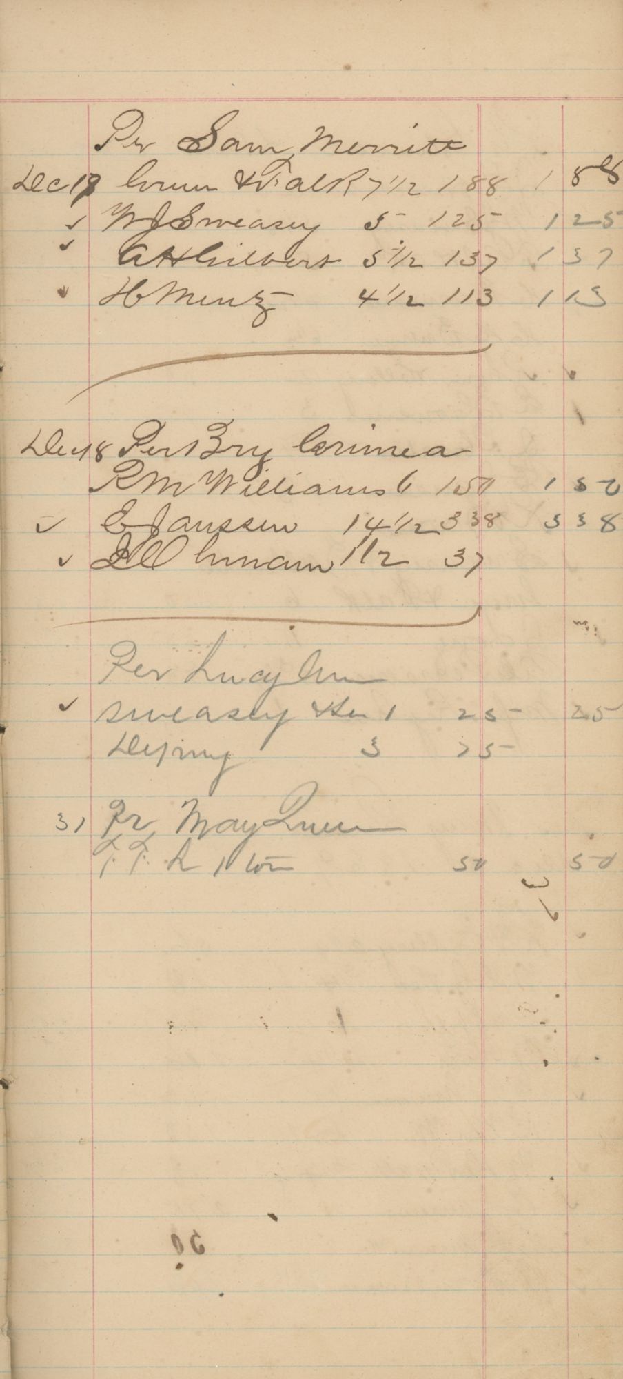 - Single 5 ½ x 12 inch ledger book with five small pages of notes and one short letter. Forty-two pages of the ledger filled out