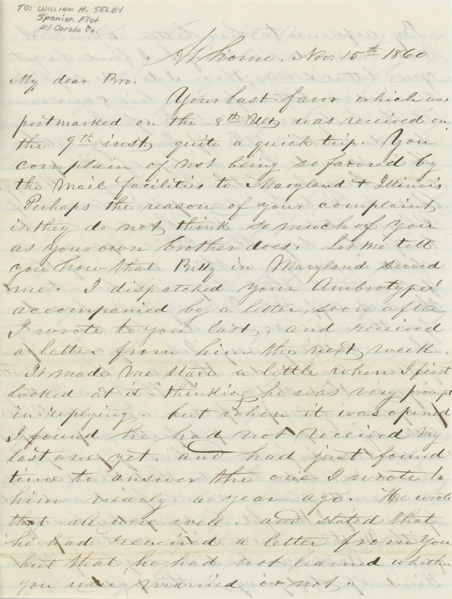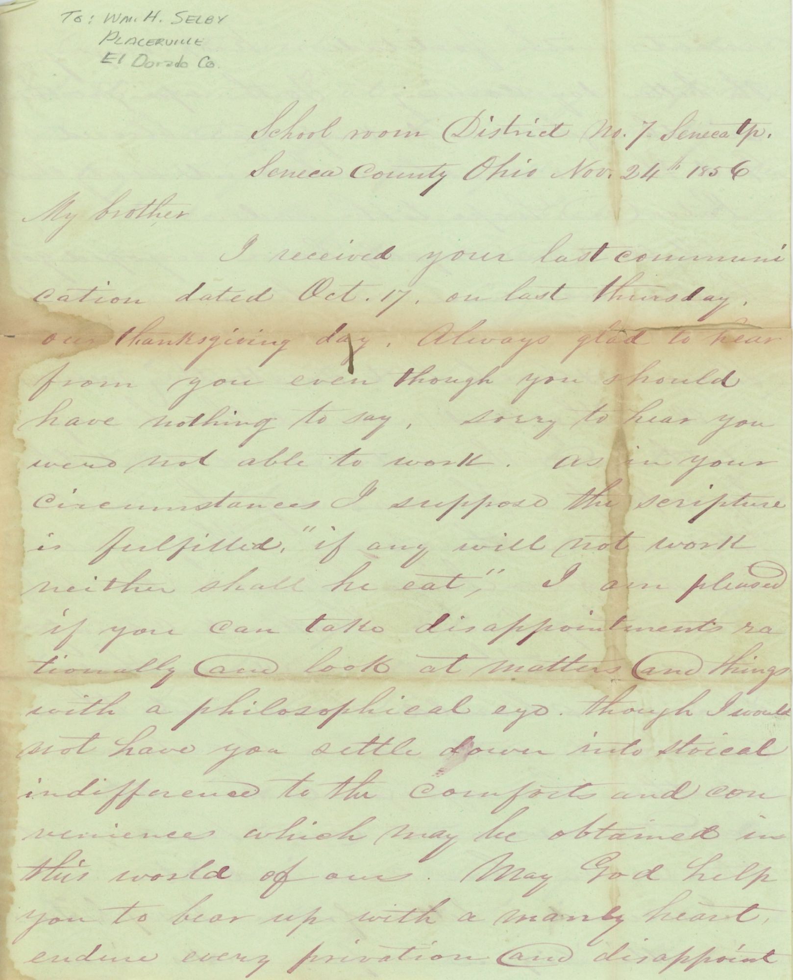 Letters from Rev. Josiah Selby of Ohio to His Brother William Remarking on The Know-Nothings, Rail Maulers, Wide Awakes, and the Civil War: “The Blood of the Puritan and his Western Children has Stained the Soil in Dixies Land,” Written to his Brother in California