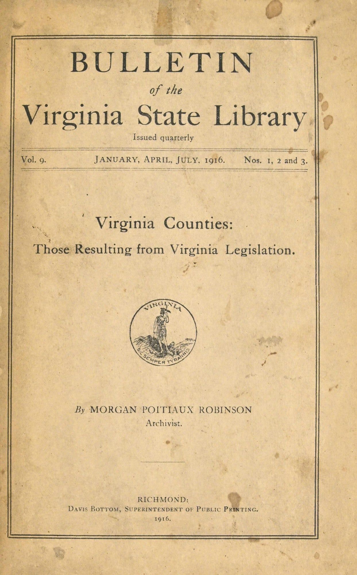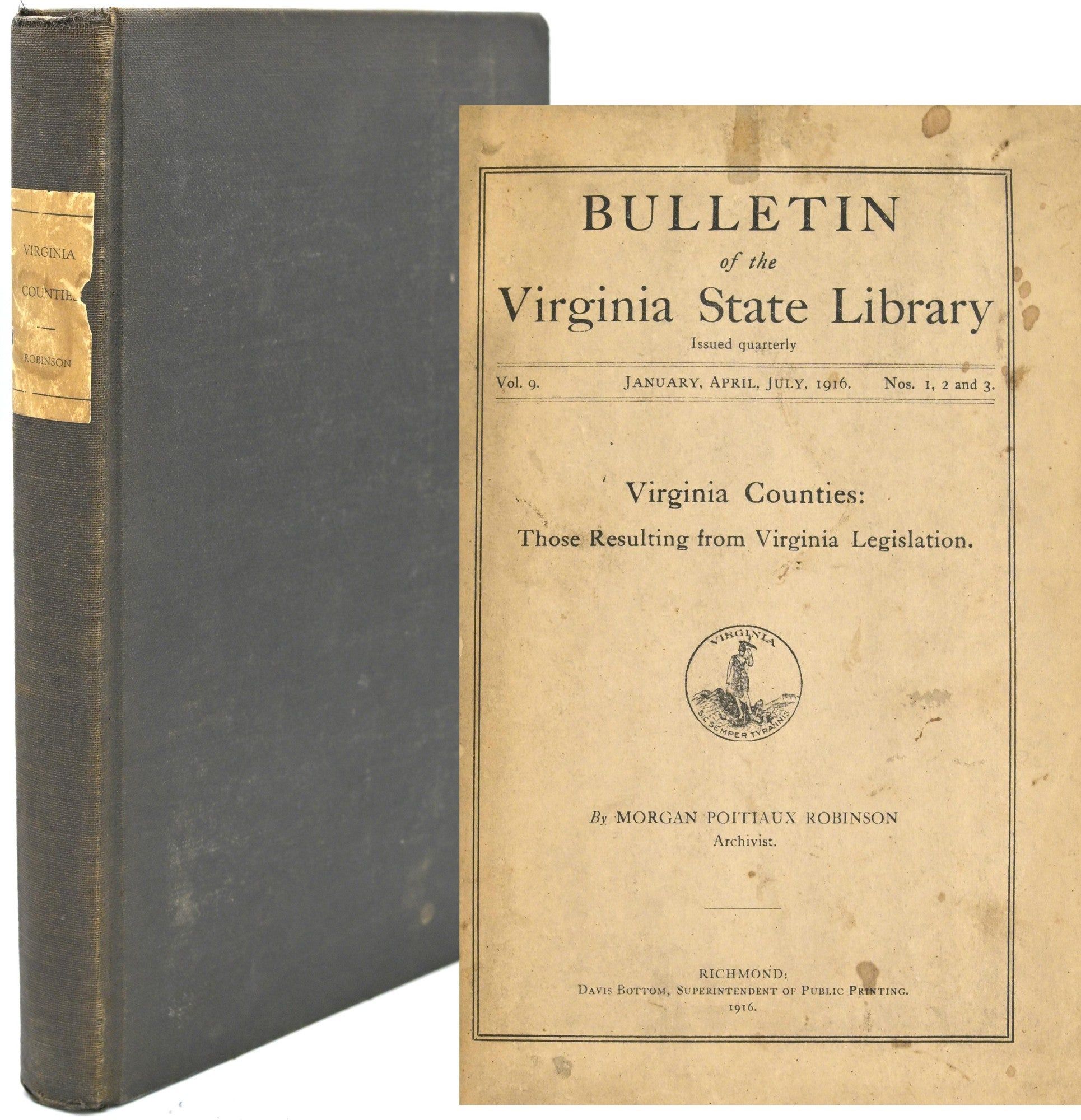 [VIRGINIANA] VIRGINIA COUNTIES: THOSE RELATING TO VIRGINIA LEGISLATION. (SIGNED) BULLETIN OF THE VIRGINIA STATE LIBRARY, VOL 9, Nos. 1-2, 3
