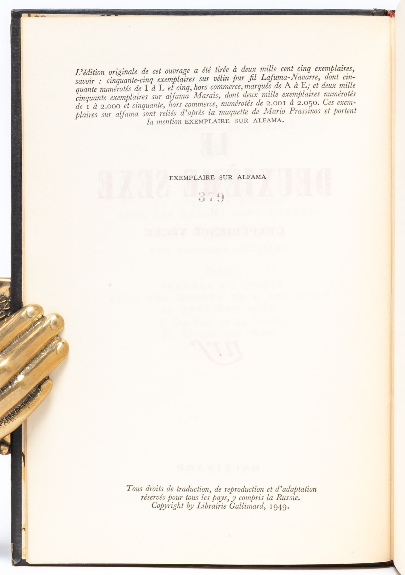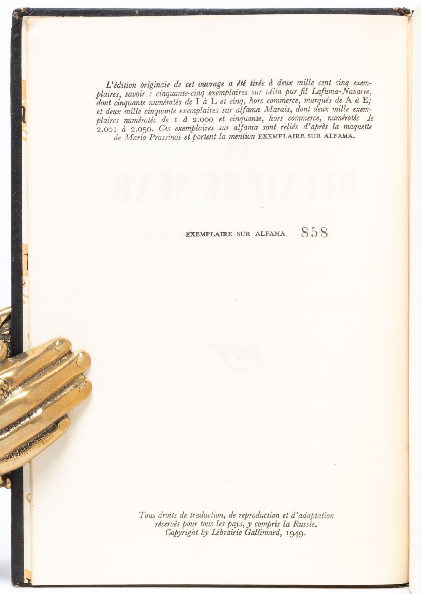 One of the preeminent French existentialist philosophers, working alongside other intellectual greats such as Jean-Paul Sartre and Albert Camus, Simone de Beauvoir made her greatest contributions in the fields of ethics, feminism, and politics. She is perhaps best known for the present work, The Second Sex, which argues that women have been historically relegated to a second class as men's "Other," and that this has led to systemic oppression. Drawing on Hegel and Sartre, de Beauvoir argues that women need to define themselves as subjects as opposed to accepting the objectification that is pushed upon them. "Her revolutionary magnum opus, it was published in two volumes and immediately found both an eager audience and harsh critics. The Second Sex was so controversial that the Vatican put it on the Index of Prohibited Books...Striking for its breadth of research and the profundity of its central insights, it remains to this day one of the foundational texts in philosophy, feminism, and women's studies" (Encyclopedia of Philosophy). A cornerstone work that led to the next wave of feminist thought, de Beauvoir made the key contribution of undercutting assumptions of gender essentialism and setting forward new ideas that positioned gender as socially constructed. Near Fine.