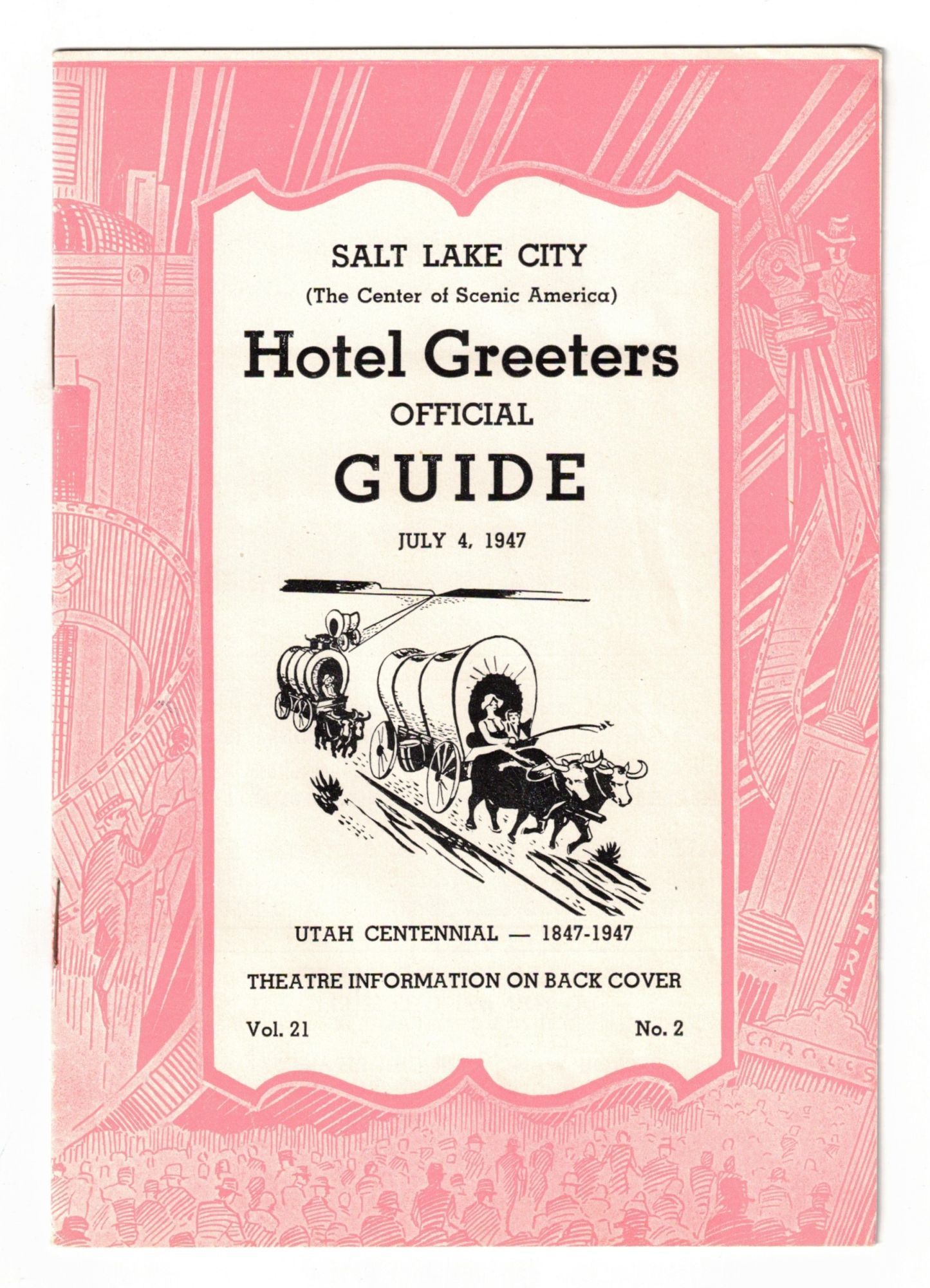 Salt Lake City (The Center of Scenic America) Hotel Greeters Official Guide July 4, 1947. Utah Centennial 1847-1947. Volume 21, Number 2
