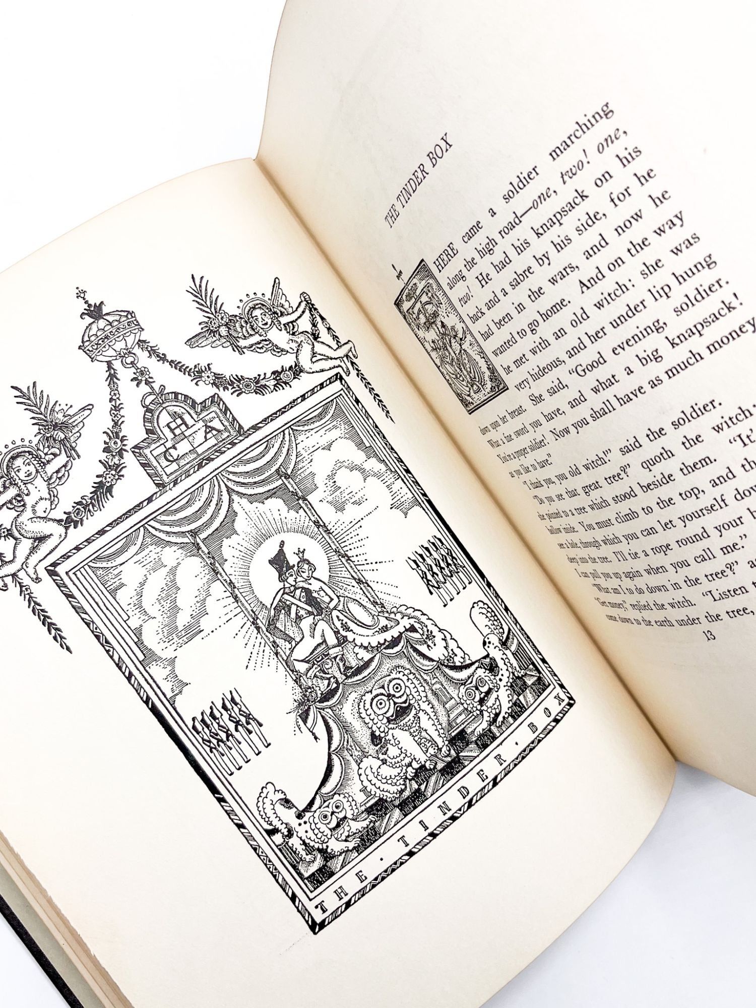 New York: George H. Doran, 1924. Very good plus.. First US trade edition with Nielsen's spectacular illustrations, among the greatest of all the many Golden Age interpretations of Andersen. Nielsen illustrates the work of fellow Dane, Andersen, in this gorgeous gift book with a style mixing "some of the decorative design of Art Nouveau with the bold shapes of Art Deco" (Menges). Includes "The Snow Queen," "The Nightingale," and more. A stunning production. 11'' x 8.5''. Original black cloth with silver pictorial paste-on. Pictorial endpapers. Illustrated by Nielsen with 12 color plates and additional black and white images. 280 pages. Pencil owner name to half title. Expert archival repair to hinges. Spine with white stamping largely effaced, as typical; some light wear to boards. Interior clean. Bright.