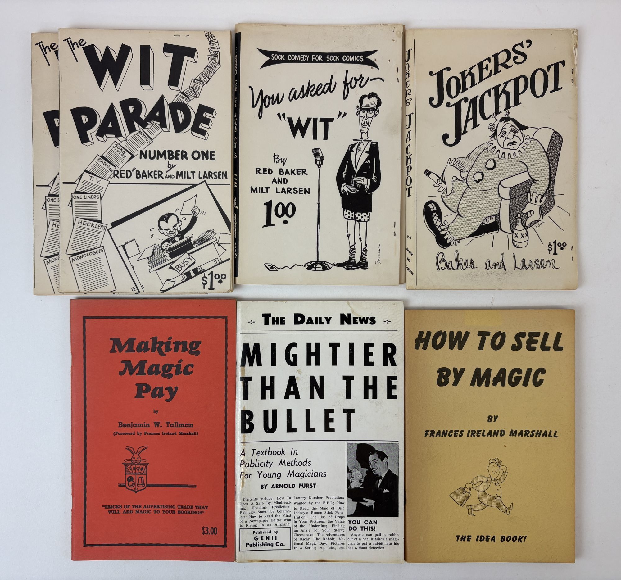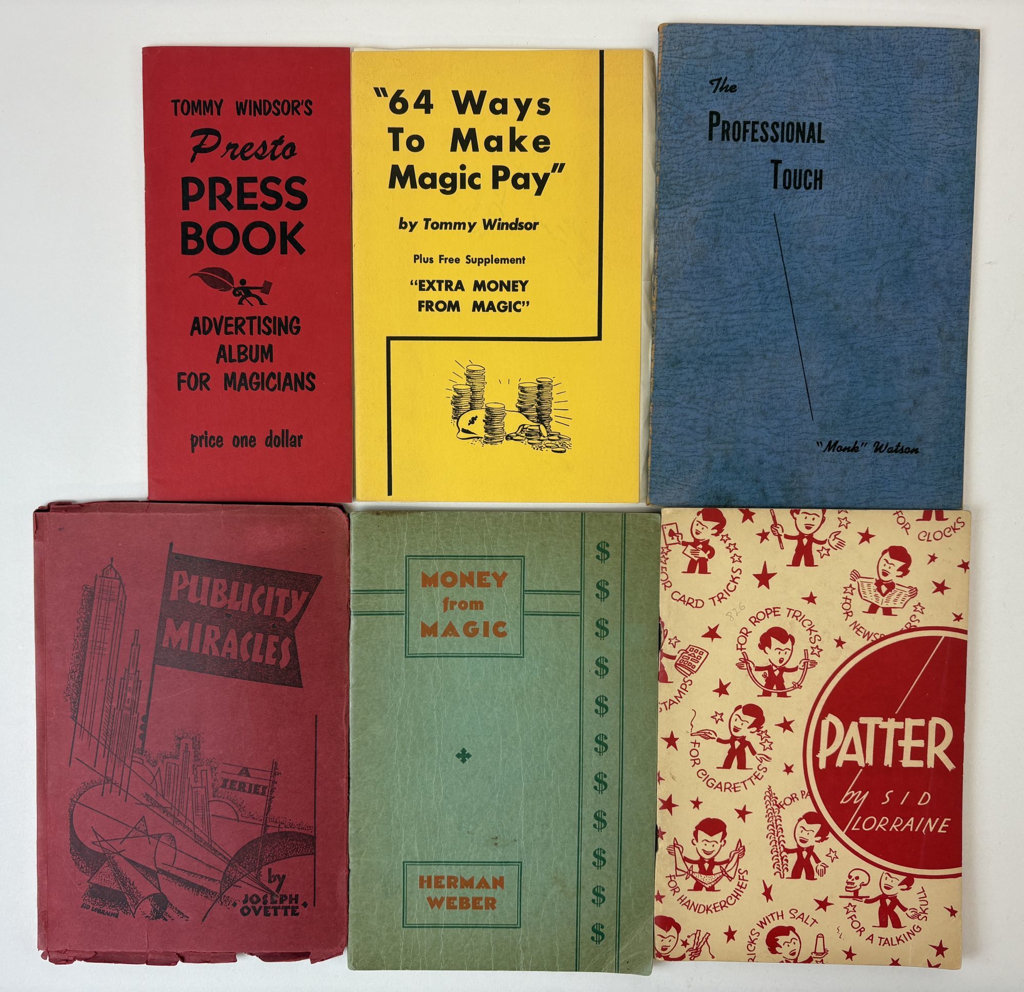 Various: Various, 1928-1975. Various. Saddle-stitched. 13 booklets on various aspects as to how to become a successful magician. The topics include advertising, publicity, on-stage patter and jokes.