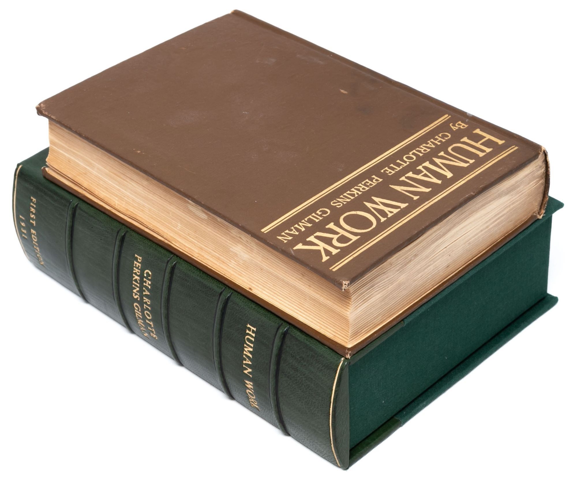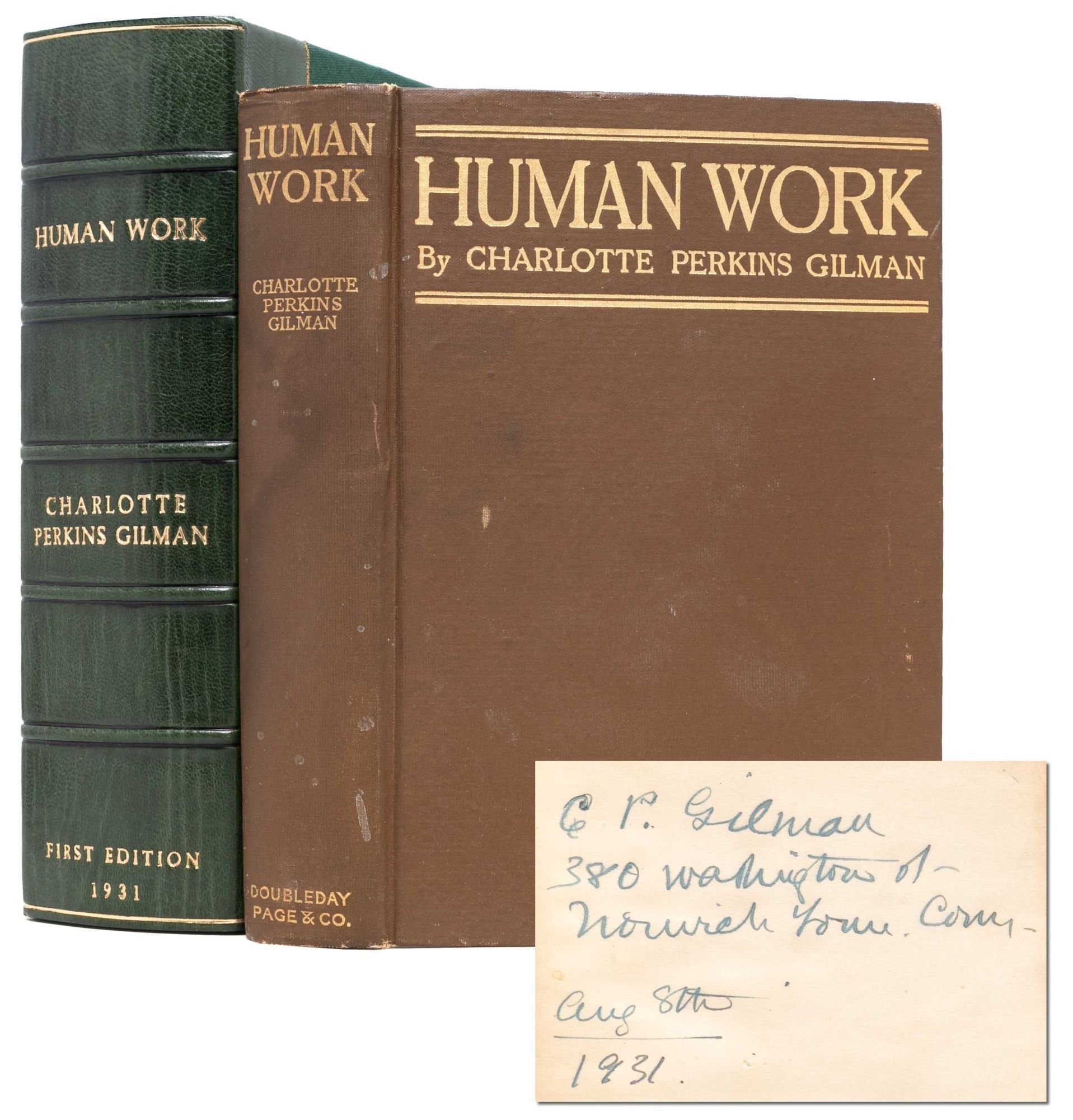 Still considered one of the most important feminists of her day, Gilman was an ardent suffragist and advocate for women's rights to property, equal employment, and bodily autonomy. Gilman also broke ground as an author: her short story "The Yellow Wallpaper" (1892), inspired by her own experiences with postpartum depression, remains an iconic example of both feminist literature and psychological horror; similarly, her utopian novel Herland (first serialized in Gilman's feminist periodical The Forerunner) is a pioneering work of feminist speculative fiction. Gilman was also a prolific author on social science topics; Human Work explores many of the themes she began to develop in her earlier work Women and Economics (1898).