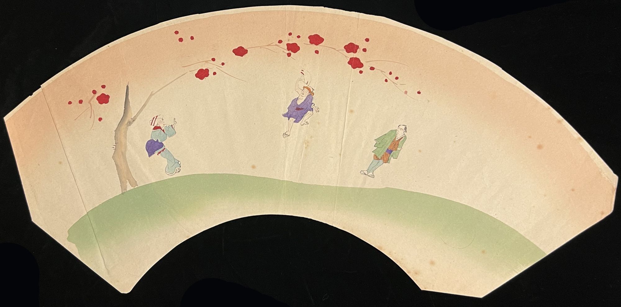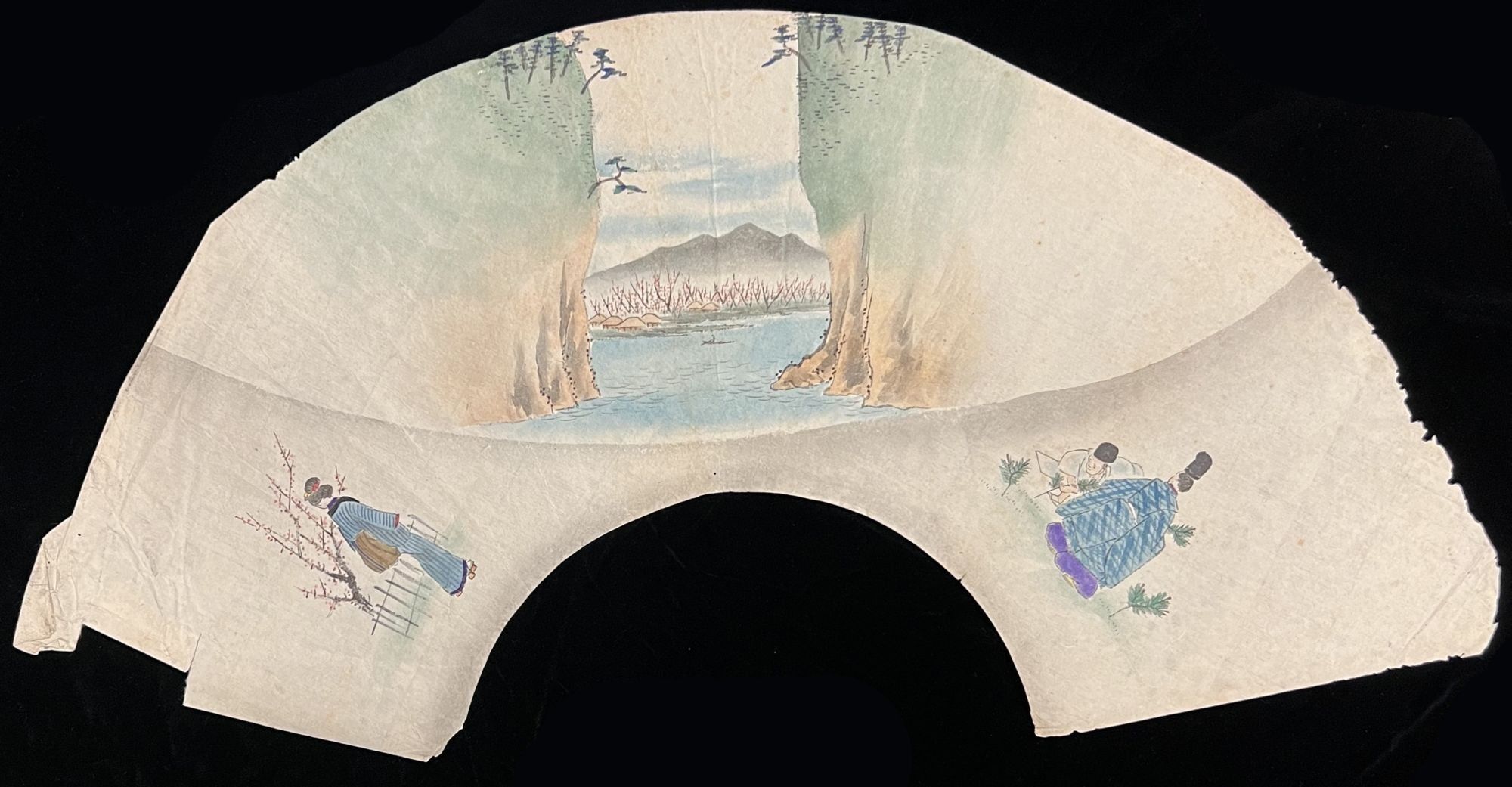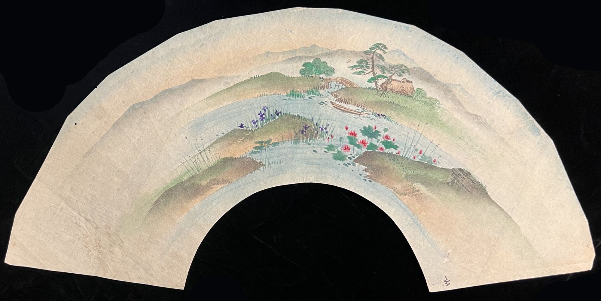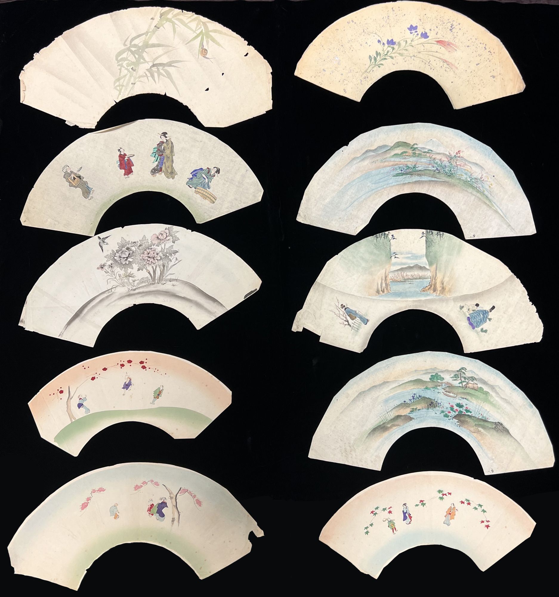 Ten (10) Japanese Fans with Original Artwork and Hand colored, 1880s