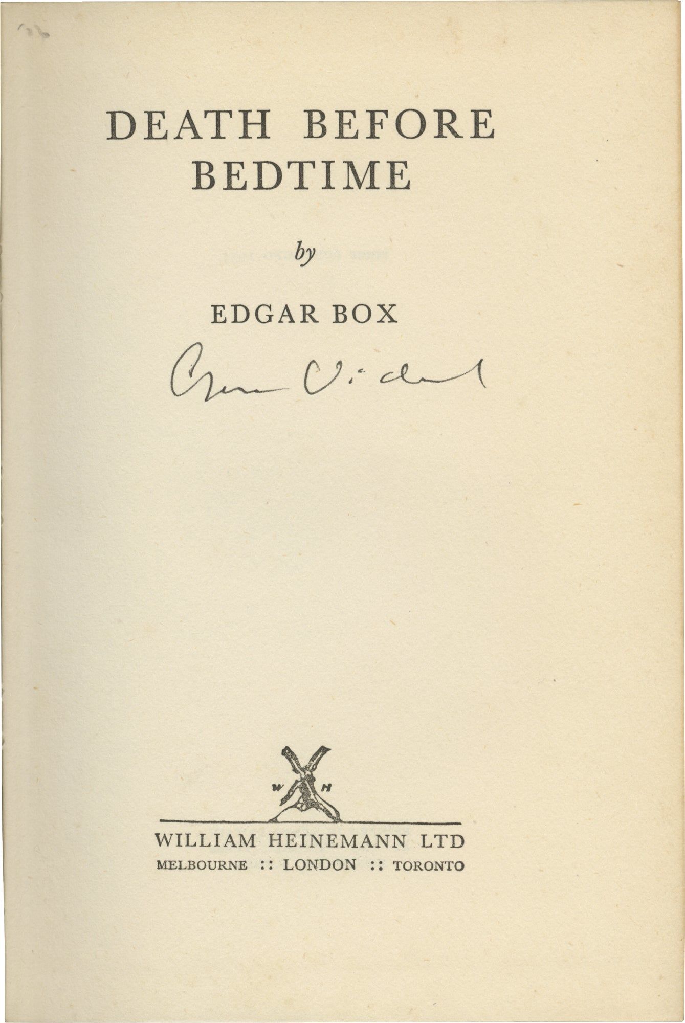 London: William Heinemann, 1954. First UK Edition, signed by Vidal on the title page.