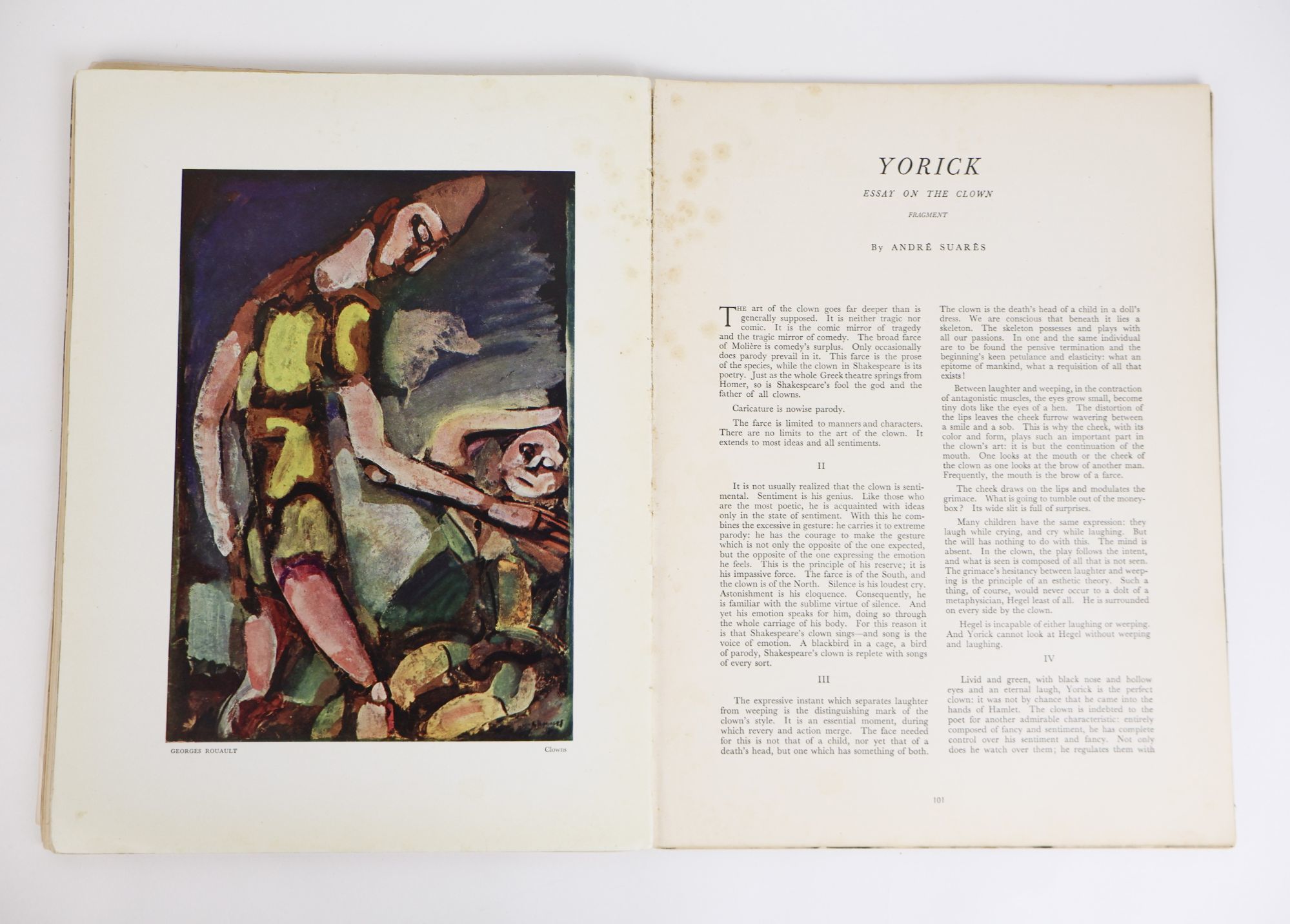 Paris, 1939. First Edition. Softcover. Folio, 140 pages. In Good condition. Bound in publisher's wraps with cover illustration by Georges Rouault. Front cover, rear cover, table of contents, and penultimate page detached from binding. Bottom left corner of rear cover missing. Chipping and tearing to edges of text block. Foxing and age toning to edges and corners of interior pages. With Matisse lithographs. Shelved Case 11. 1396043. Shelved Dupont Bookstore.