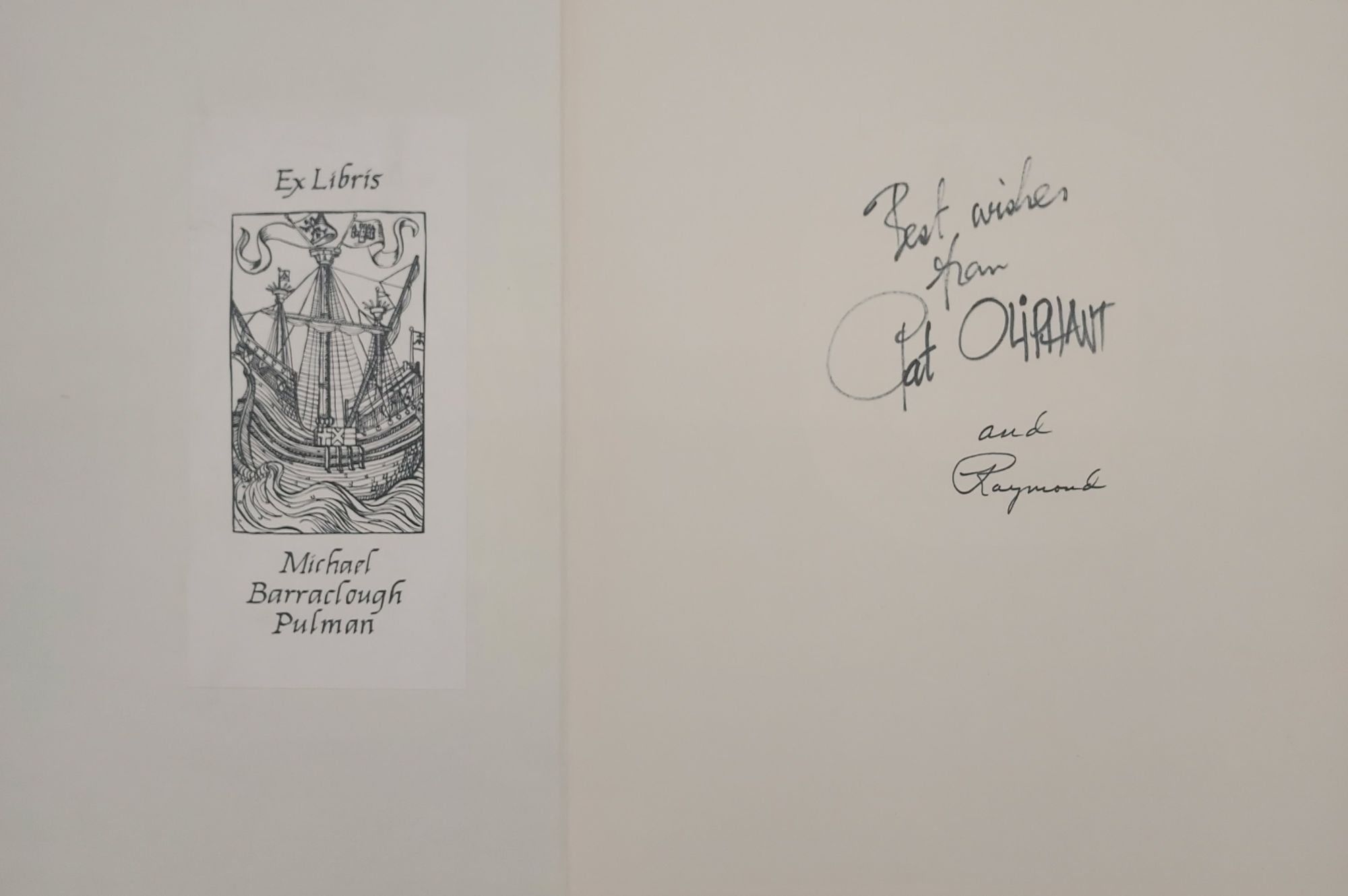 New York: Simon and Schuster, 1969. First edition. Hardcover. Very Good/Very Good. SIGNED. 190pp. Quarto [28 cm] Light gray paper over boards. Publisher's bright orange topstain. Front board just a trifle warped. In the dust jacket, with light rubbing and chipping to the edges. Ex-libris Michael Barraclaugh Pulman, with his bookplate on the front pastedown. Born in England, 1933, Pulman taught as a professor of history at University of Denver (1971-1991). He later moved to Santa Fe, N.M. and eventually became President of the Santa Fe Botanic Garden. Inscribed by Oliphant on the front free endpaper: "Best wishes from Pat Oliphant." Below the inscription is pen: "and Raymond.