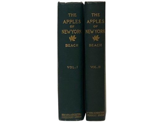 Albany: J.B. Lyon Company, Printers, 1905. First Edition. Hard Cover. Good/No Jacket. 0x0x0. First edition. A few minor scuffs to boards, volume 1 binding repaired, edges and front/end matter of volume 2 foxed, owner sticker on front flyleaf of first volume, ink stamp on front endpaper of volume 2. 1905 Hard Cover. Complete in two volumes. 8vo. xx, 409; iv, 360 pp. Green cloth, gilt titles and decorations, numerous color plates of various apple species throughout. Part of a larger series commissioned by the New York Agricultural Department, still valued today for their detailed descriptions and images. Modern attempts to reproduce this set have not successfully captured the quality of illustration achieved in the original.