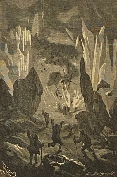 London / New York: George Routledge and Sons, 1876. Reissue. Hard Cover. Very Good/No Jacket. 0x0x0. Riou, [Edouard]; Dumont, L. Reissue. Minor wear to corners, pages lightly toned, top corner of front endpaper clipped. 1876 Hard Cover. 248 pp. Brown cloth, gilt spine panel, black decorations. Illustrations throughout by Edouard Riou and L. Dumont. Mutiny, shipwrecks, cold, hunger and even polar bears are a part of this exciting adventure. "The English at the North Pole" is the first part of Jules Verne's novel "The Adventures of Captain Hatteras" from 1864. It tells the story of the ambitious and determined captain who will do whatever it takes to get to the North Pole. The journey is however not that easy and many obstacles are in the way. The sea around the pole turns out to be frozen so the captain and a part of his crew are forced to spend a long winter on the island "New America". Will they survive the freezing weather and possible attacks' Will the captain's strength, perseverance and determination be able to oppose the obstacles' Find out in this exciting adventure novel.