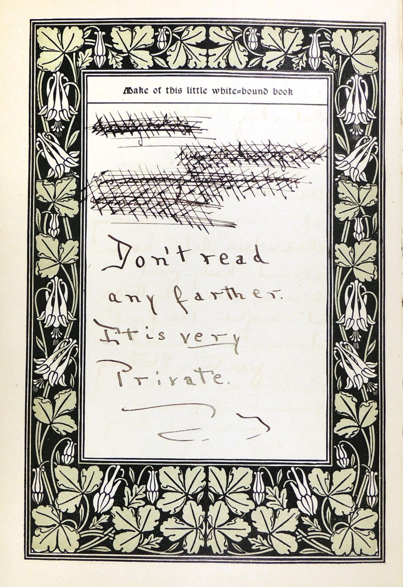 Bound in yellow cloth covers with red titling and a color illustration, of a young woman writing in her diary. Red titling and a smaller illustration to spine. Covers are lightly soiled and rubbed. Decorated endpapers of young women have a few colored in. There is also a cute drawing in color of a little boy on the blank side of a frontis portrait of Johnston. Interior pages are generally clean. There are cracks to the hinges but text block is firm. Very good condition. Small octavo. Unpaginated. [about 150 pages].
