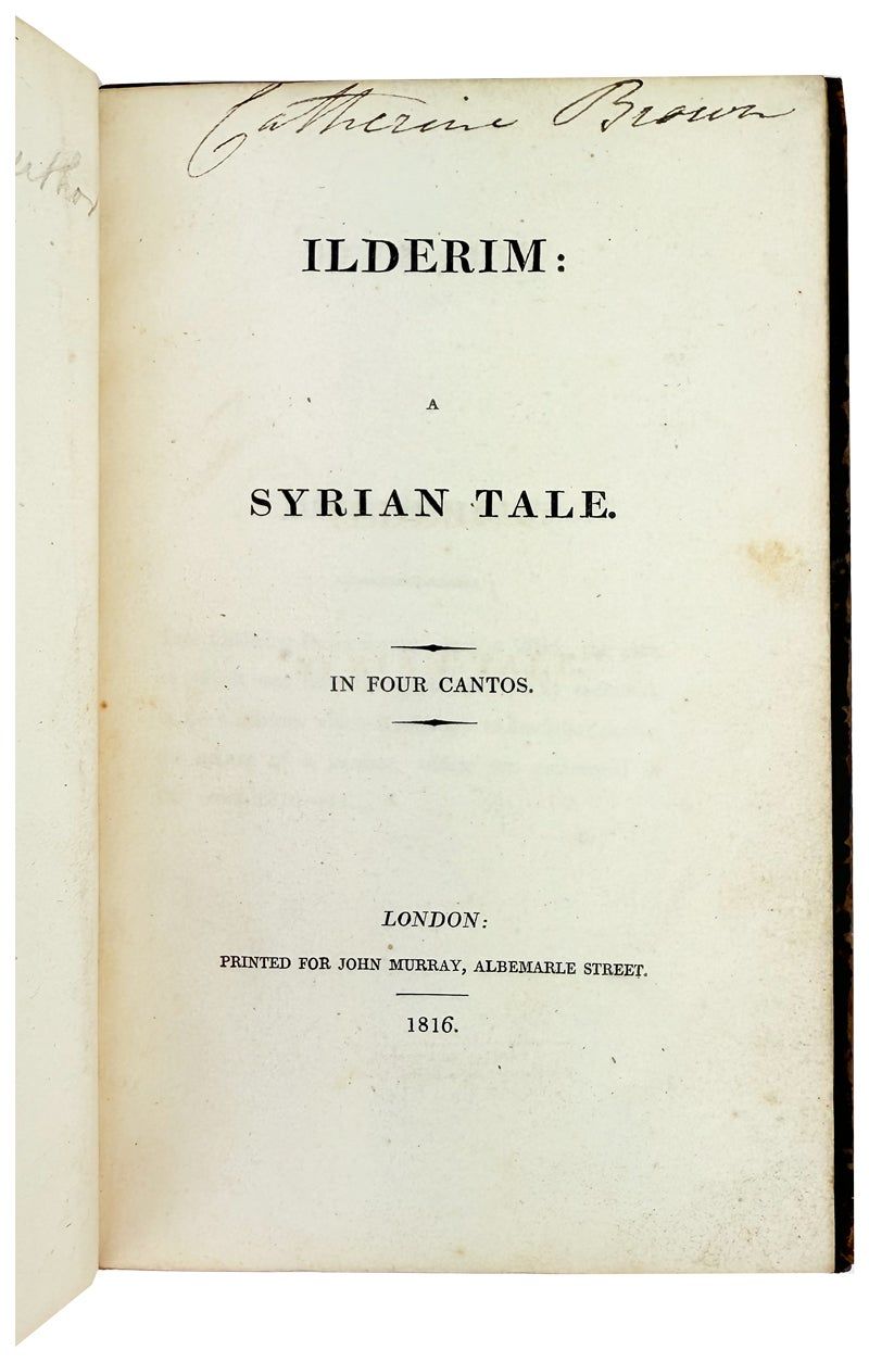 London: John Murray, 1816. Very Good. London: John Murray, 1816. First Edition. Octavo. 74 + [8]pp. advertisements, with half-title, collated and complete. Bound in full contemporary calf with gilt stamping to spine. Boards show general scuffing; wear to edges and spine; surface cracking to spine with evidence of prior repair and binding holding. Contemporary ownership inscription of a Catherine Brown to title; interior else unmarked; still a Very Good copy.