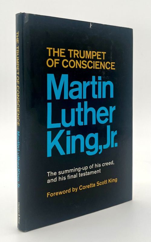 New York: Harper and Row, 1968. First Edition. Hardcover. Very Good +/Very Good. 78pp. Octavo. [22 cm]. Black cloth over boards. Gilt stamping with title on spine. Dust jacket is rubbed, with a small open tear at top of front cover. This is a collection of Dr. King's arguments and revelations regarding civil rights in the months leading to his death contained in 5 lectures: The Trumpet of Conscience, Where Do We Go From Here: Chaos or Community, Why We Can't Wait, Strength to Love, Stride Toward Freedom. He elaborates the reasons for the riots that have erupted in retaliation to continued oppression adn exploitation, how the vietnam war has set us back, and what may be in store for the future.