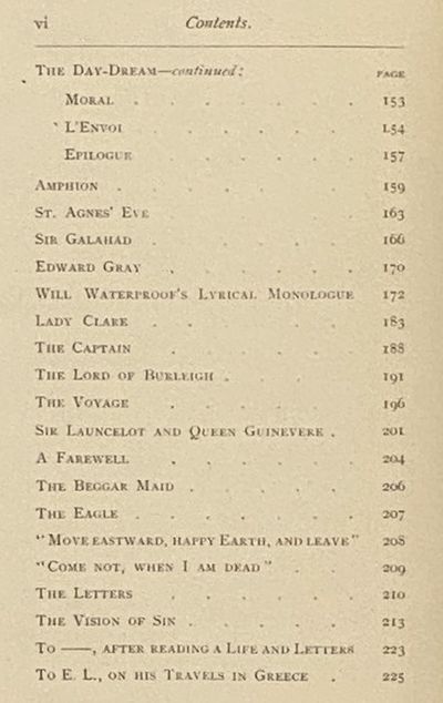 New York: Frederick A. Stokes Company, 1891. Reissue. Hard Cover. Very Good/No Jacket. 0x0x0. Johnson, Charles Howard; Boston, Frederick J. Edges rubbed with corners slightly exposed, ink name and address on front endpaper. 1891 Hard Cover. viii, 384 pp. Decorative cloth boards - cream cloth spine, floral cloth over boards, gilt titles and rules. An antiquarian collection of Tennyson's poems, including new illustrations by Charles Howard Johnson and Frederick J. Boston.
