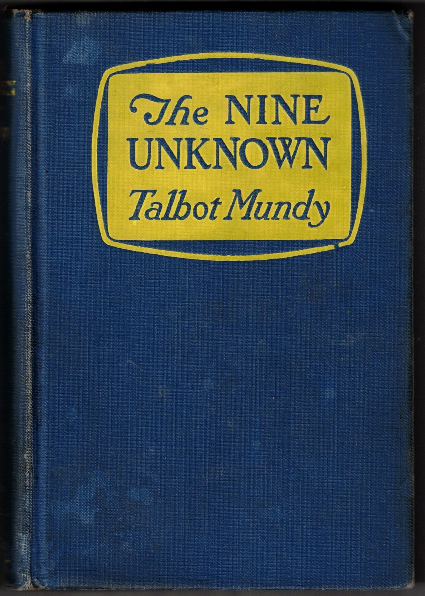 Indianapolis: The Bobbs-Merrill Company, 1924. First edition. Hardcover. Very good minus. 353pp. Duodecimo [19 cm] Blue cloth over boards with yellow ink stamping. There are a number of faint small stains on the boards, and the title on the spine is a bit rubbed. There is a contemporary owner's name at the head of the front free endpaper, and there is a bookseller's ticket on the rear pastedown. From the collection of Berkeley book collector and letterpress printer John Ruyle. Bleiler Checklist. "333" "Over a period of many centuries, an endless quantity of gold and silver has been disappearing into India. The employers of Jimgrim, Ramsden, Jeremy Ross, and Athelstan King provide incentive for this quartet to investigate. Through contact with ancient books of magic and sorcery- or scientific knowledge unknown to man- they learn of a league of nine. The league, known as the Nine Unknown, has existed from before the time of Atlantis, and has assembled and guarded secrets beyond the concepts of man. In trying to unearth the nine, the Jimgrim quartet matches strength with an imposter Nine Unknown- masters of evil who desire the gold of ages. The quartet learns that the wealth has been processed and combined effectively with the waters of the Ganges to provide an elixir of life." - "333
