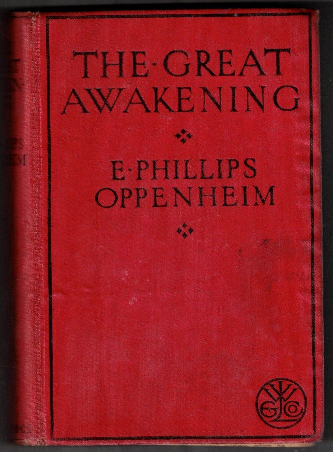 London and Melbourne: Ward, Lock & Co., Limited, No date. Early reprint. Hardcover. Good. 256pp. Duodecimo. Red cloth over boards with black ink stamped titles on the backstrip and front board. Spine slanted. Cloth of the boards lightly soiled and rippled. Numerical notation on front pastedown. Partial ink stamp on rear pastedown. From the collection of Berkeley book collector and letterpress printer John Ruyle. Bleiler Checklist. In Hubin. Oppenheim (1866-1946) was known for his suspense fiction and he is considered to be one of the originators of the thriller genre. He published at least 160 novels from 1887 until just before his death. "The Great Awakening" also appeared as "A Sleeping Memory.