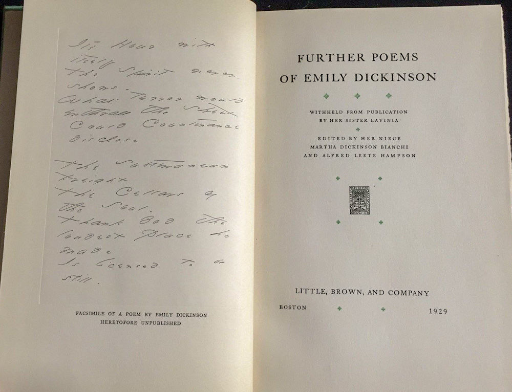 FURTHER POEMS OF EMILY DICKINSON. Withheld from Publication by Her Sister Lavinia