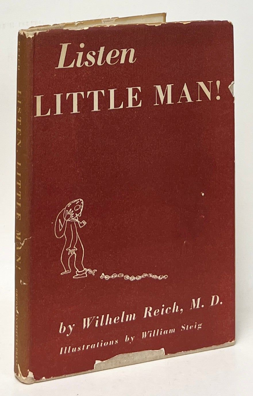 New York: Orgone Institute Press, 1948. First Edition. Hardcover. Near Fine/Good. Illustrations by William Steig. Translated by Theodore P. Wolfe. Near Fine in a Good jacket, unclipped ($3.00), generally toned, chipped at the edges and flap folds. Beige cloth with brown ink lettering and designs on the spine and front board. Square and firmly bound, clean internally. Reich's work that explains the sabotaging nature of the average "Little Man.