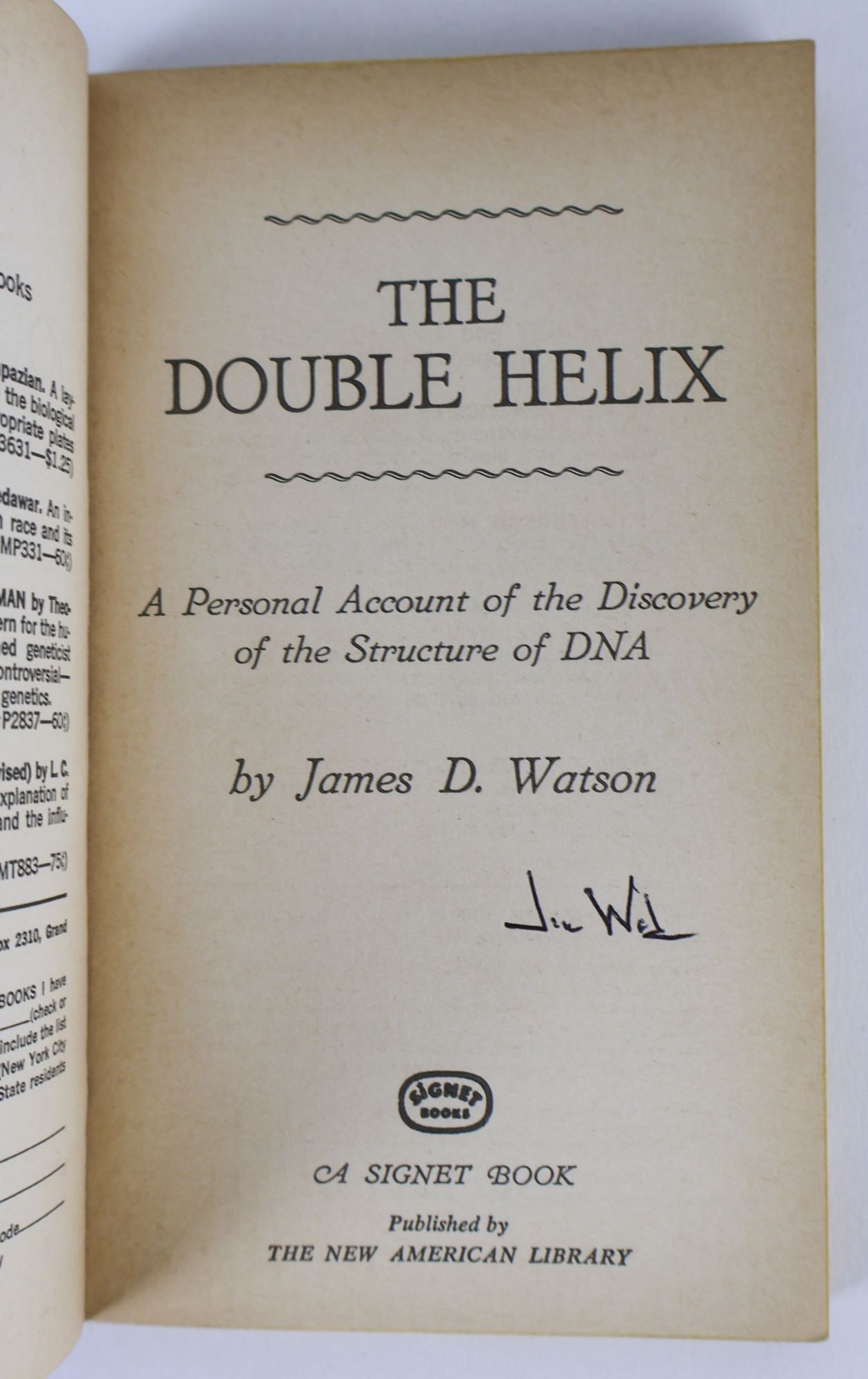 THE DOUBLE HELIX: A PERSONAL ACCOUNT OF THE DISCOVERY OF THE STRUCTURE OF DNA [Signed]