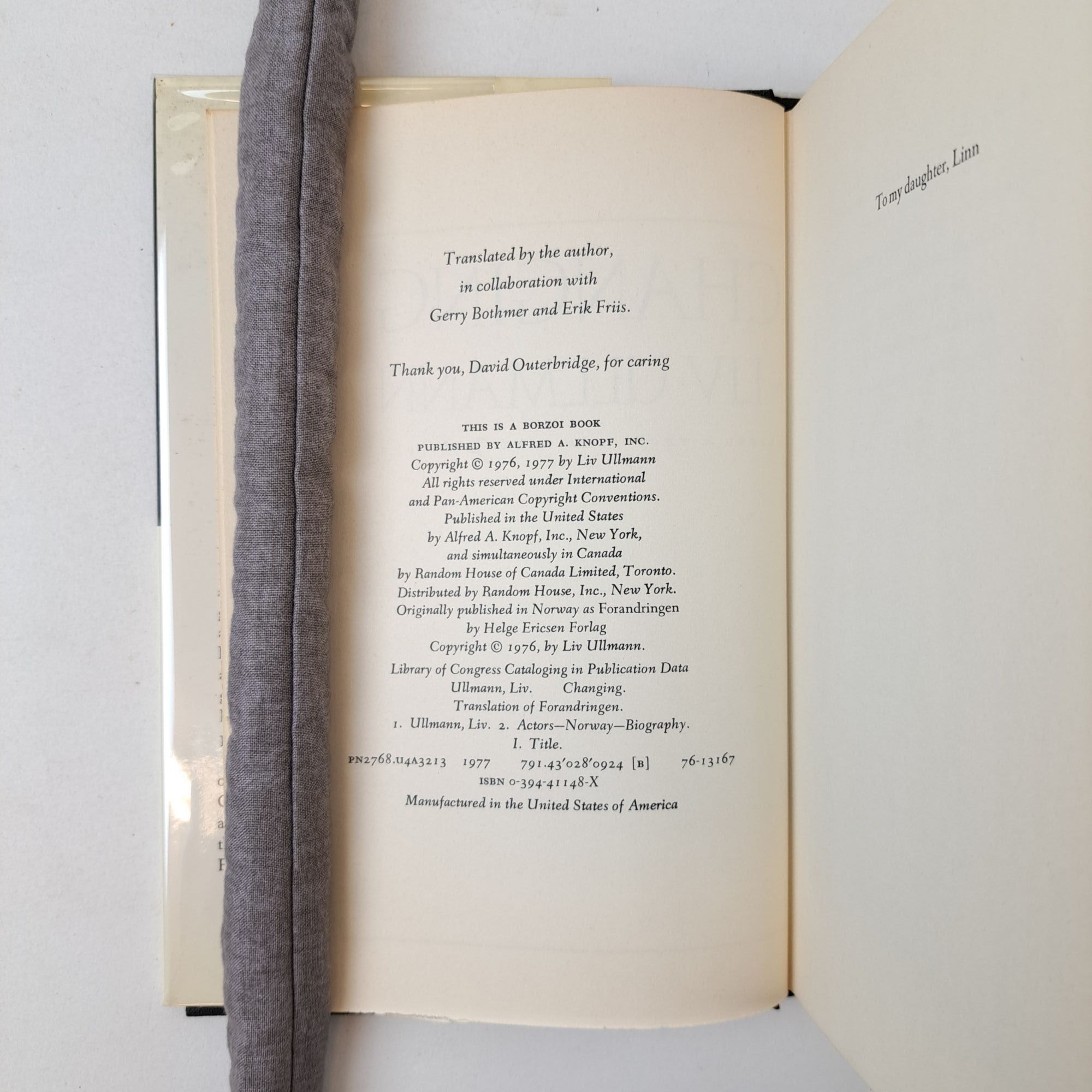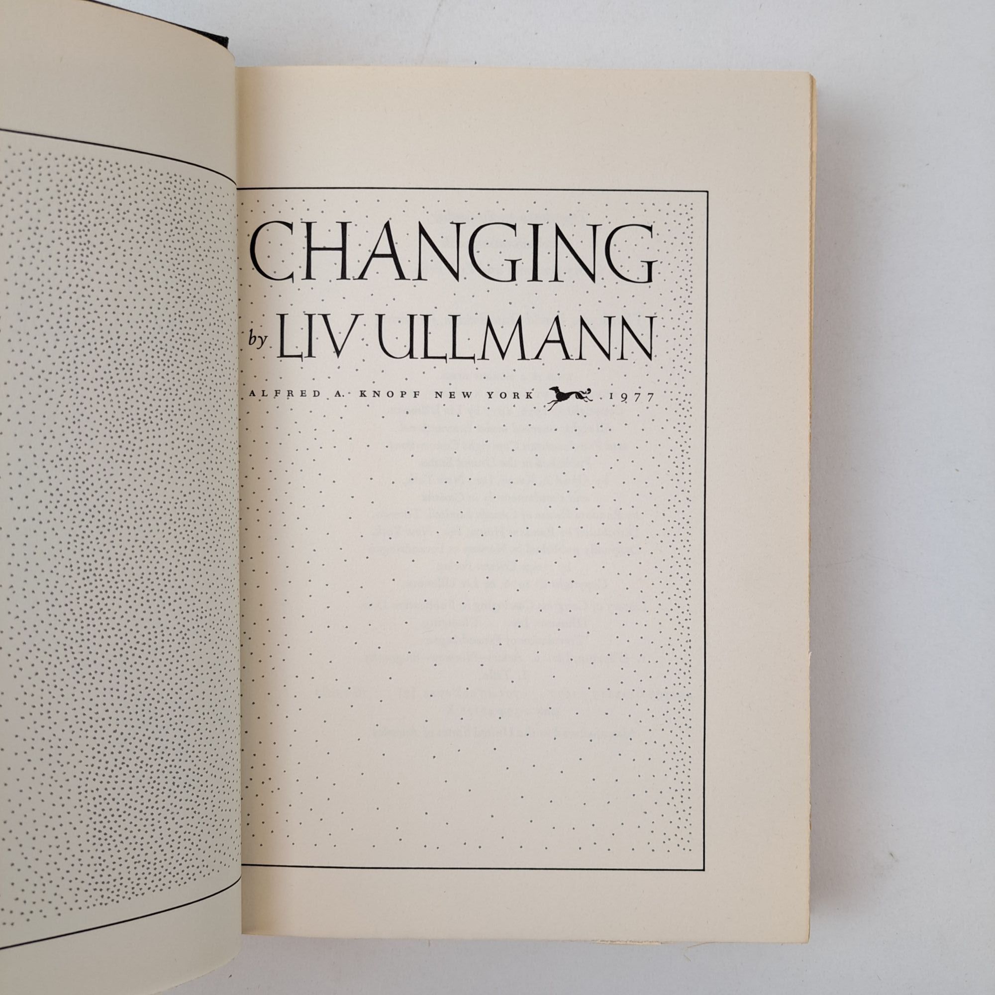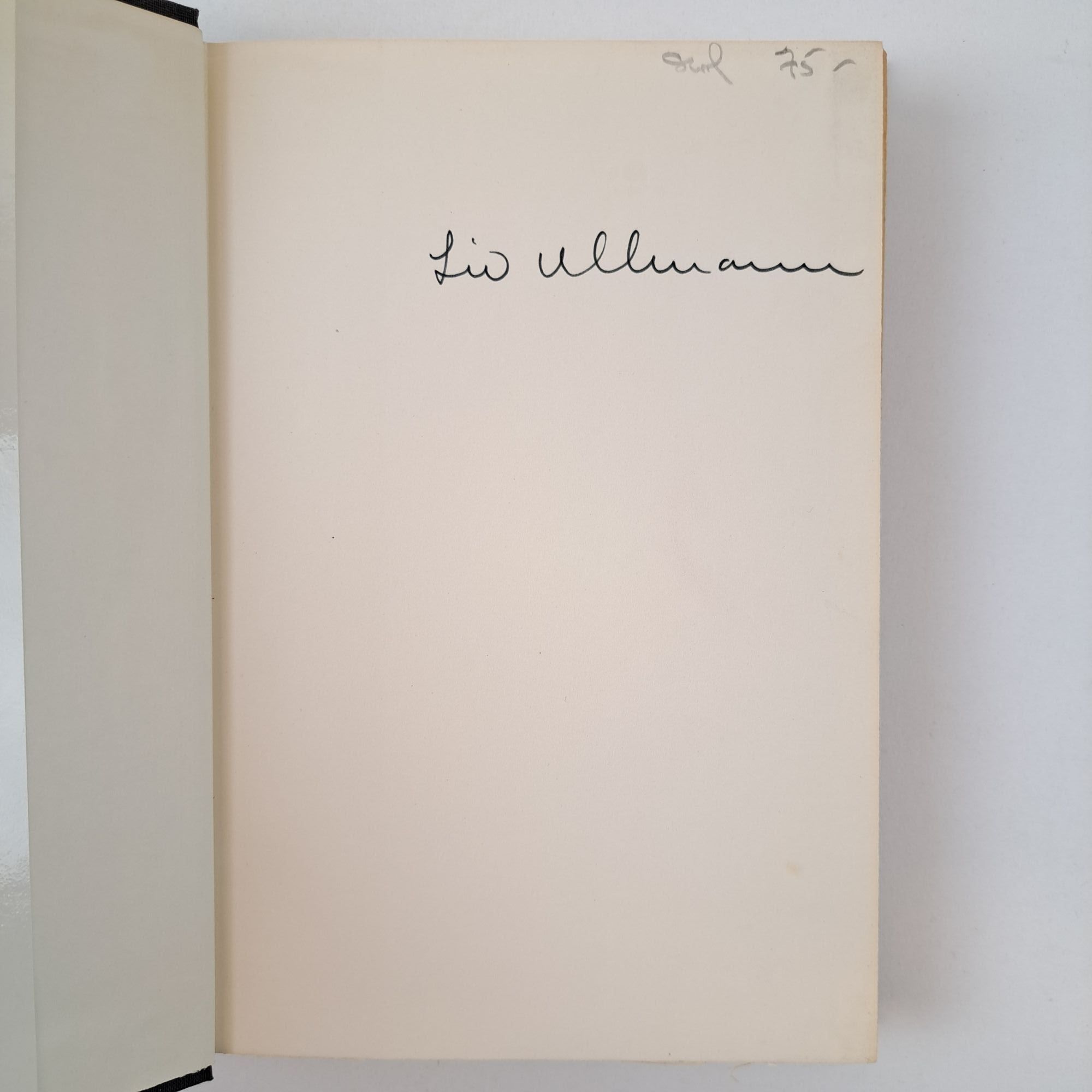 New York, New York: Alfred A. Knopf, 1977. First Edition. Hardcover. Octavo, 244 pages. In Very Good condition with Very Good minus condition dust jacket. Spine is cream with black lettering. Dust jacket protected by mylar covering, price uncut: "$8.95" on front flap, has mild age toning along spine, front head and fore edges, and a small surface tear to front tail joint. Boards have mild shelving wear along extremities and light denting to rear head joint. Text block edges mildly age toned pp.1-214 and endpapers. Signed flat by Liv Ullmann on front free endpaper. Shelved Room C. 1396862. Special Collections.