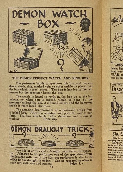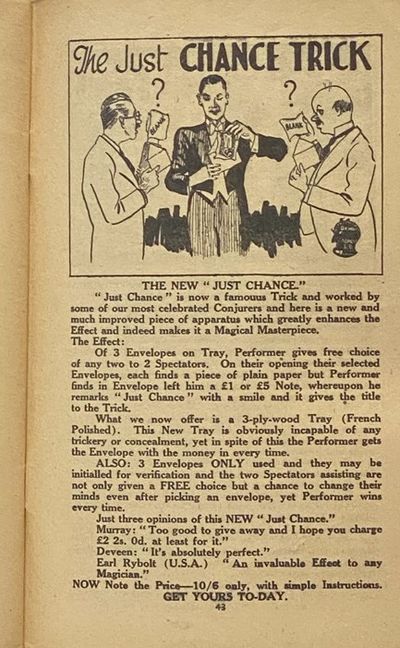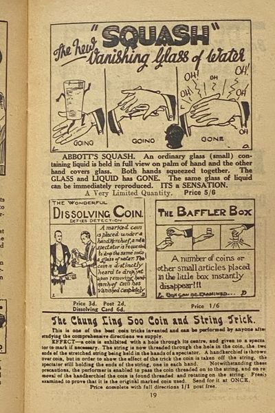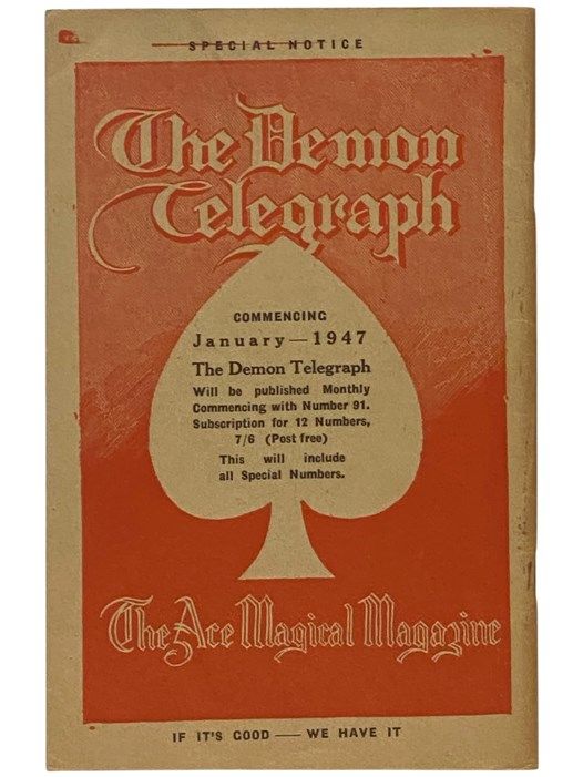 London: L. Davenport & Co, 1946. Stapled Binding. Very Good. Wrappers and pages lightly toned. 1946 Stapled Binding. 48 pp. An advertising catalog for the British dealer in magic tricks and other items useful for performing magicians and hobbyists.