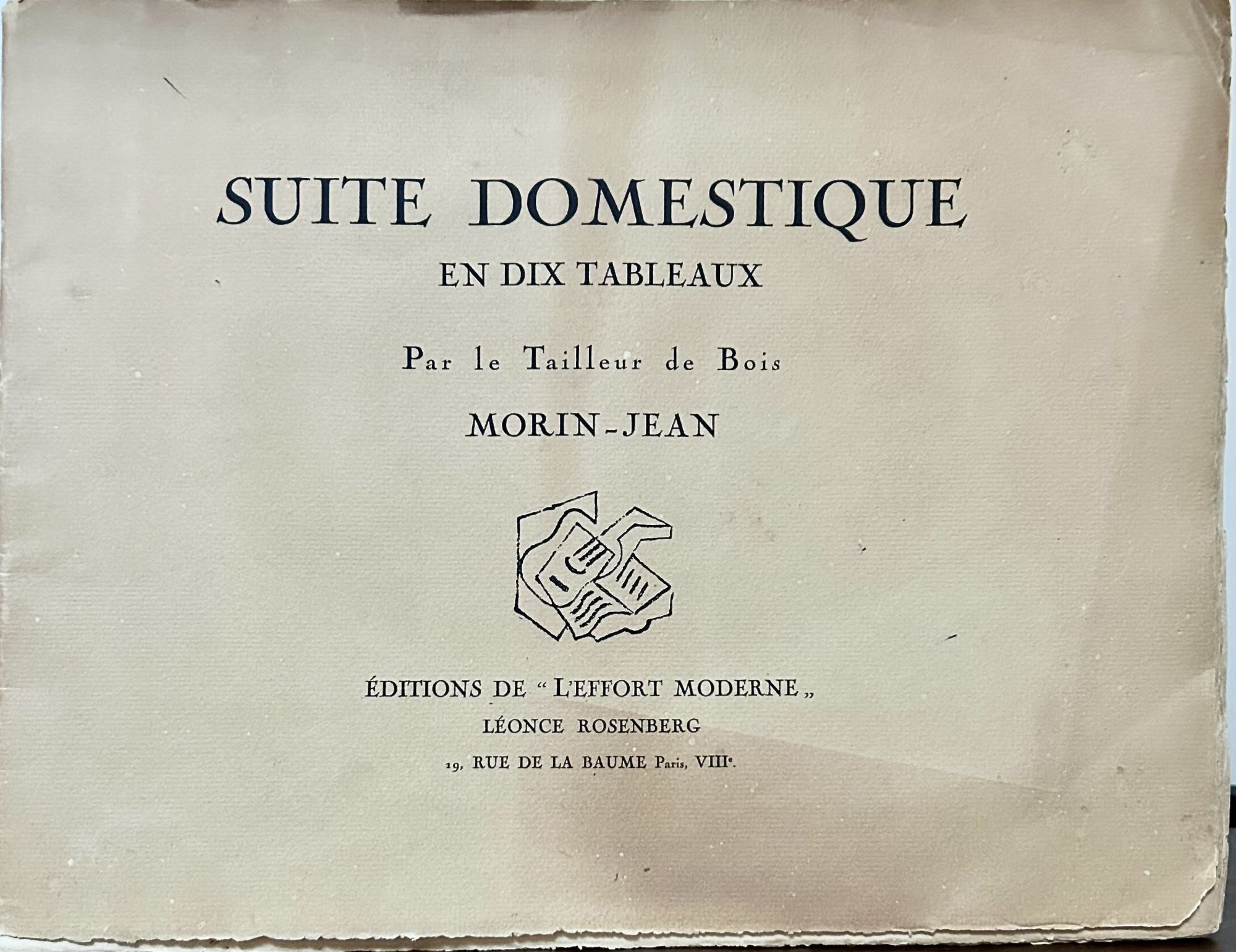 Paris: Editions De "L'Effort Moderne" (Leonce Rosenberg), 1920. First Edition. Wraps. Orig. tan self wrappers lettered in black. Very good. 25 x 32 cm. Limited edition, copy 95 of 174 on Holland Van Gelder and signed by him on title page. Ten titled wood blocks printed recto only. A prolific printmaker, much of his output was for book illustrations popular in France between the WWI and WWII. He also engraved, etched and carved woodblocks to create fine art images. This, a series of food related prints. OCLC: 469695432. Nick to cover corners.