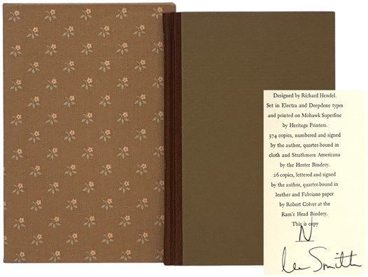 Chapel Hill: The Mud Puppy Press, 1988. Limited Edition. Hard Cover. Near Fine/Fine. Signed by author. Copy N of a limited edition of 26 copies. Hand-lettered and signed by author without inscription on limitation page. Includes publisher's floral slipcase. An exceptional copy. 1988 Hard Cover. 37 pp. 8vo. This novella by the popular novelist and short story writer was originally released in two limited editions: one numbered, the other lettered. This is the latter, quarter-bound in leather and Fabriano paper by Robert Colver at the Ram's Head Bindery.