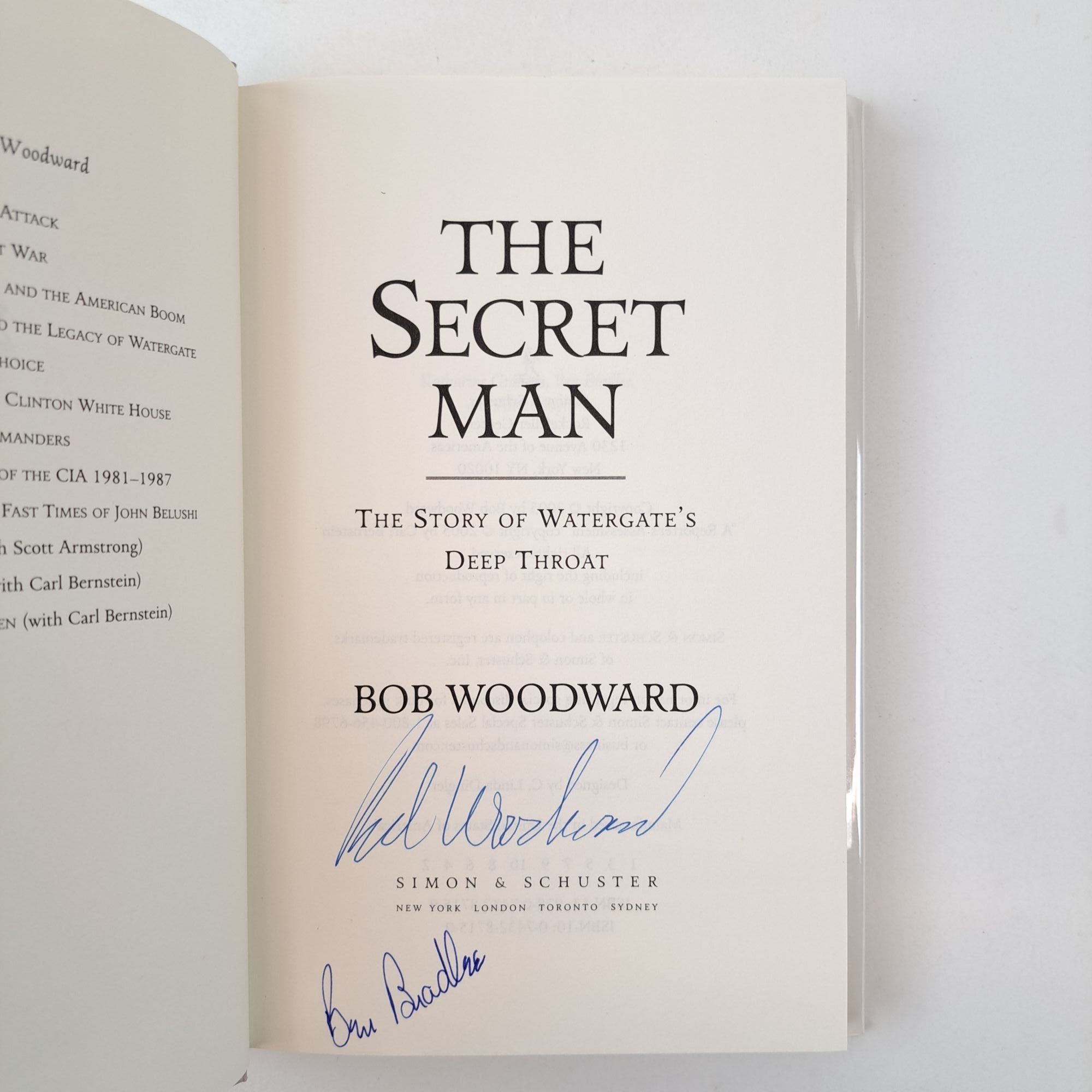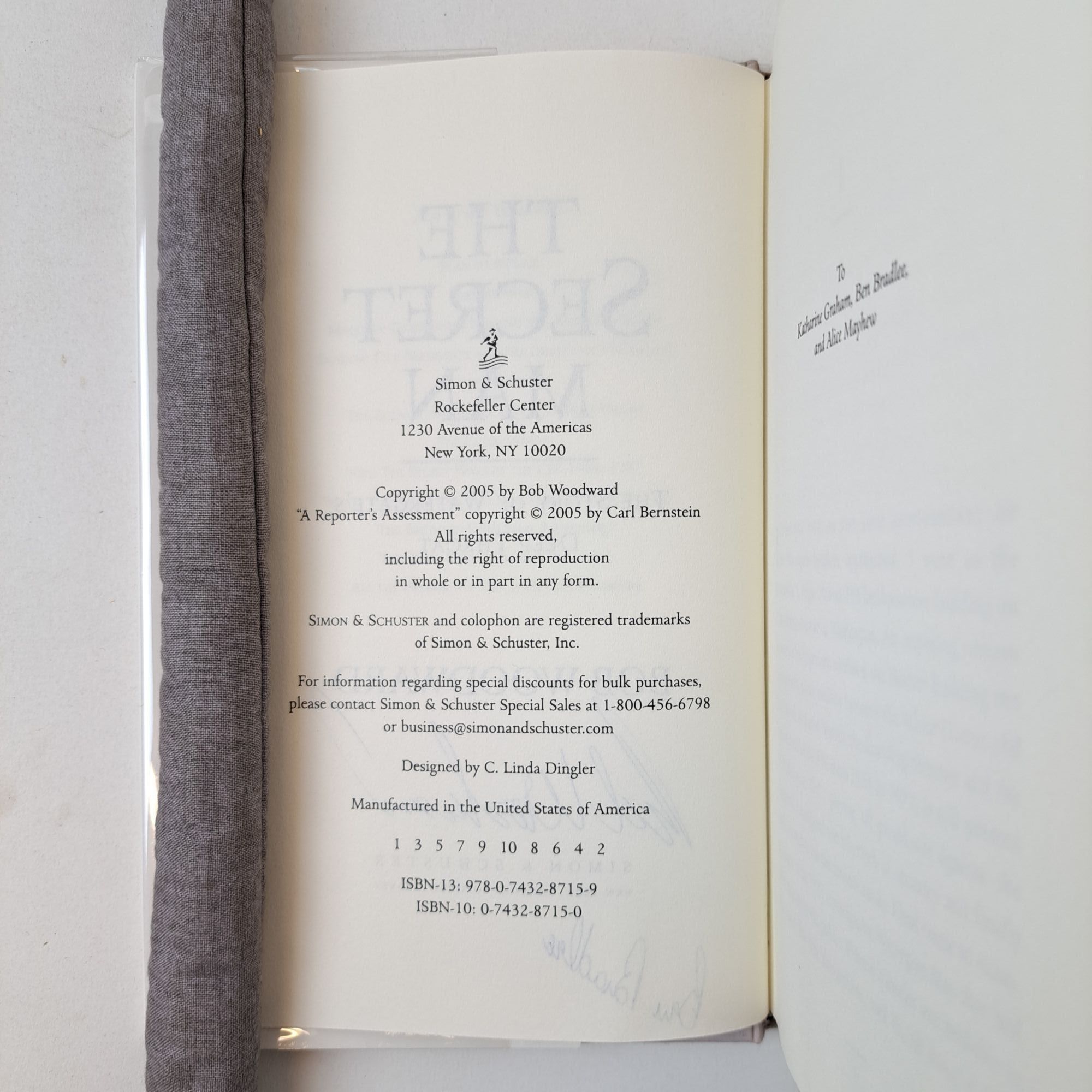 New York, New York: Simon & Schuster, 2005. First Edition, First Printing. Hardcover. Octavo, 249 pages. In Very Good condition with Very Good condition dust jacket. Spine is white with black lettering. Dust jacket protected by mylar covering, price uncut: "$23.00" on front flap, has mild shelving wear and discoloration along spine head and tail. Boards have mild shelving wear along extremities and mild damp staining and discoloration along spine head, spine tail, and joints. Text block has mild foxing along head edge. Signed flat on title page by Bob Woodward [Author] and Ben Bradlee [Mentor]. Shelved Room C. 1397025. Special Collections.