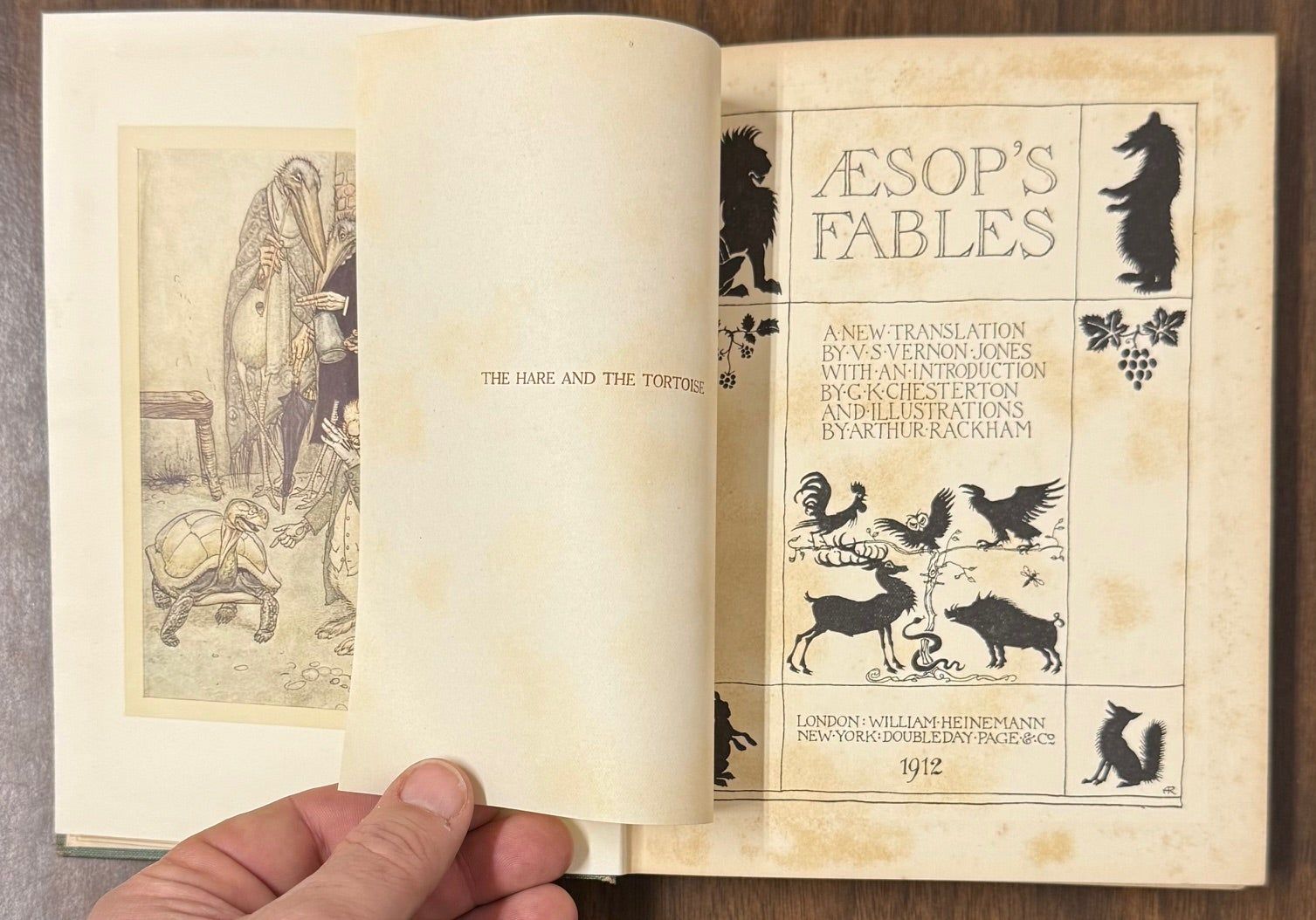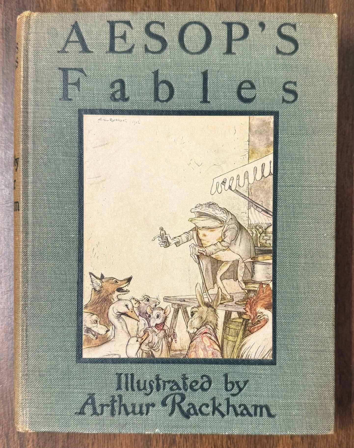 London: Heinemann, 1912. First. hardcover. very good. Arthur Rackham. Translated by V.S. Vernon-Jones. Introduction by G.K. Chesterton. Color frontispiece and 12 other color plates protected with lettered tissue, plus numerous black & white drawings, all by Arthur Rackham. 224 pages. 8vo, black-lettered green cloth with inset pictorial label. London: William Heinemann & New York: Doubleday Page, 1912. First American Rackham trade edition. Lightly worn at extremes and spine evenly faded to tan; foxing throughout but still a very good solid copy.