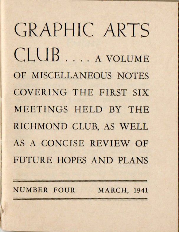 [RICHMOND] [ARTS] GRAPHIC ARTS CLUB MINI-PAMPHLET