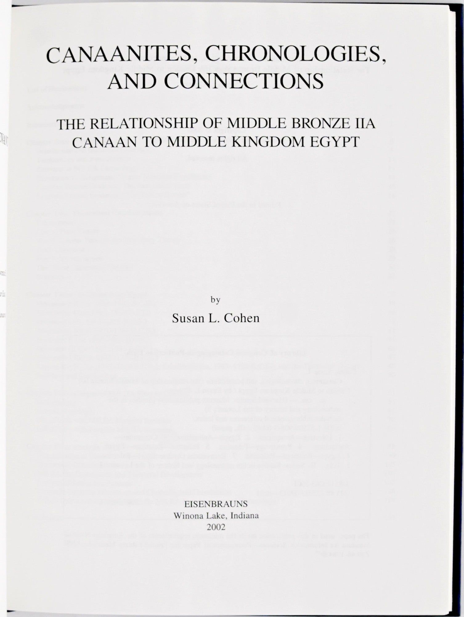 [ANCIENT WORLD] CANAANITES, CHRONOLOGIES, AND CONNECTIONS: THE RELATIONSHIP OF MIDDLE BRONZE IIA CANAAN TO MIDDLE KINGDOM EGYPT