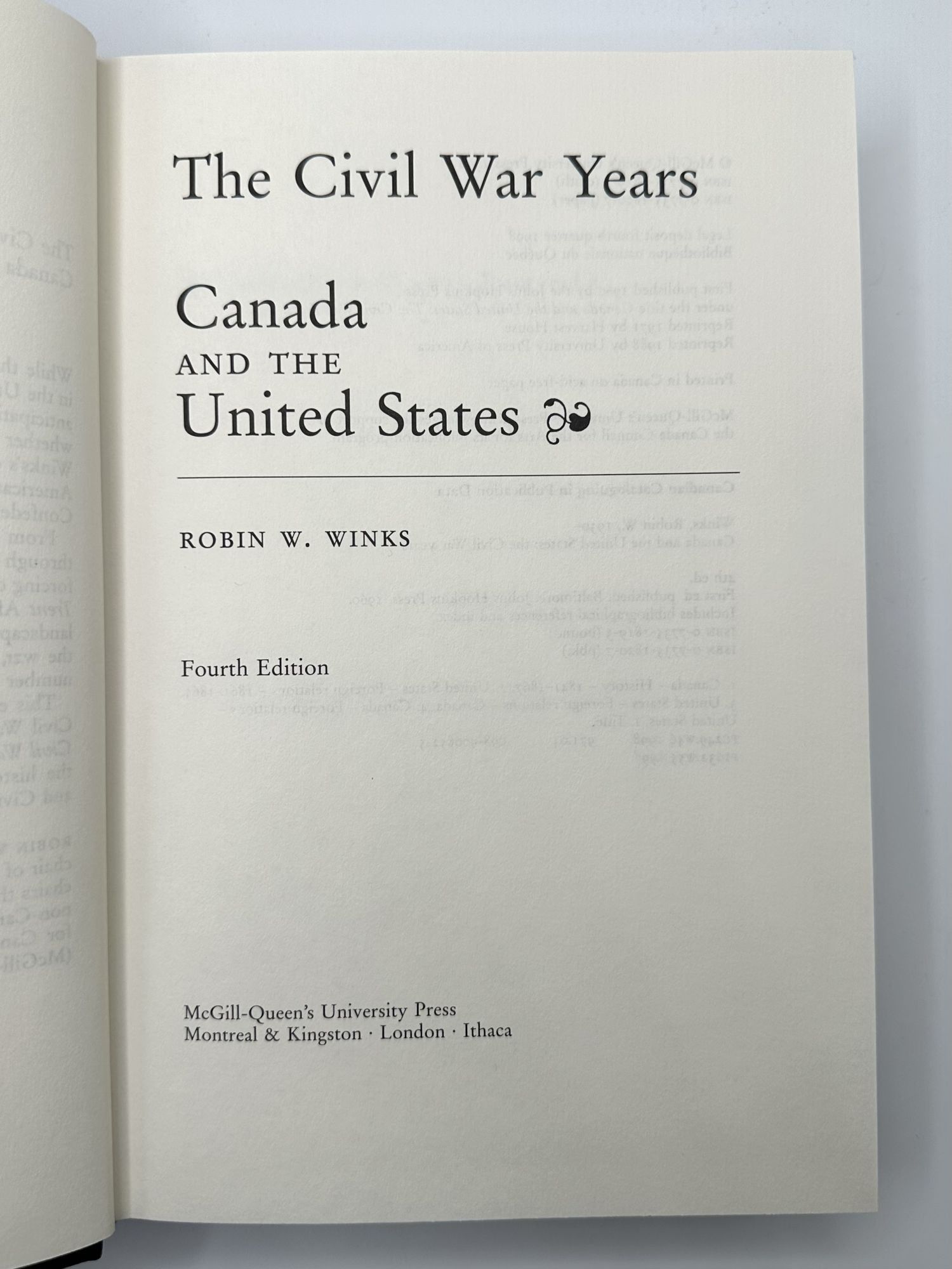 Montreal & Kingston: McGill-Queen's University Press, 1998. Fourth Edition. Hardcover. Octavo, 430 pages. In Very Good minus condition. Bound in black cloth with silver text. Former barcode sticker adhered to rear board. Slight scuffing to edges of text block. Interior pages clean. Shelved US History > Civil War. 1397145. Shelved Dupont Bookstore.
