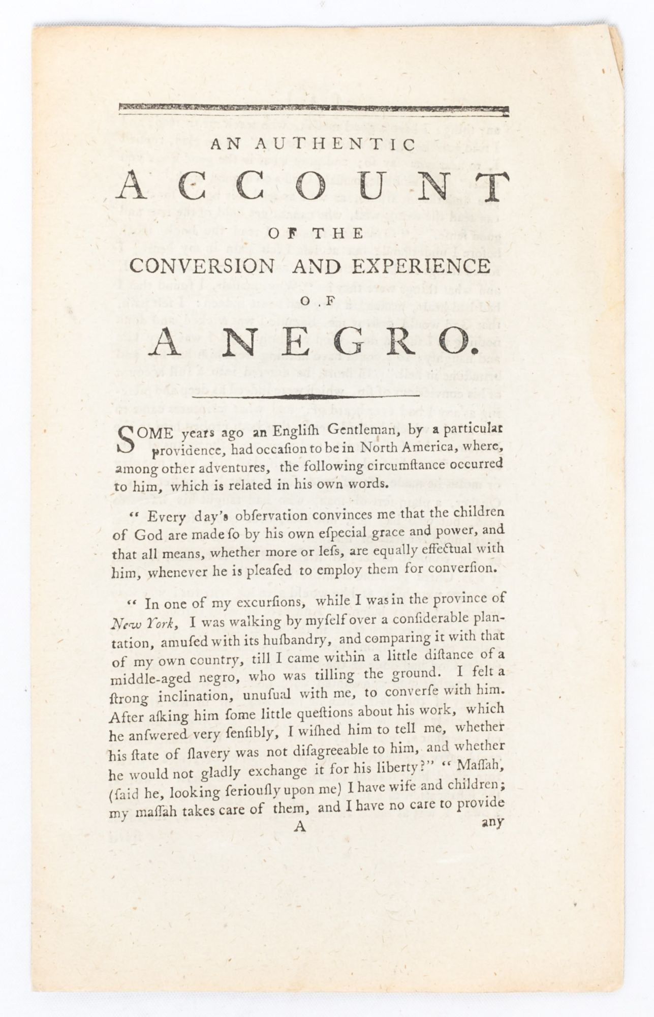 An Authentic Account of the Conversion and Experience of a Negro