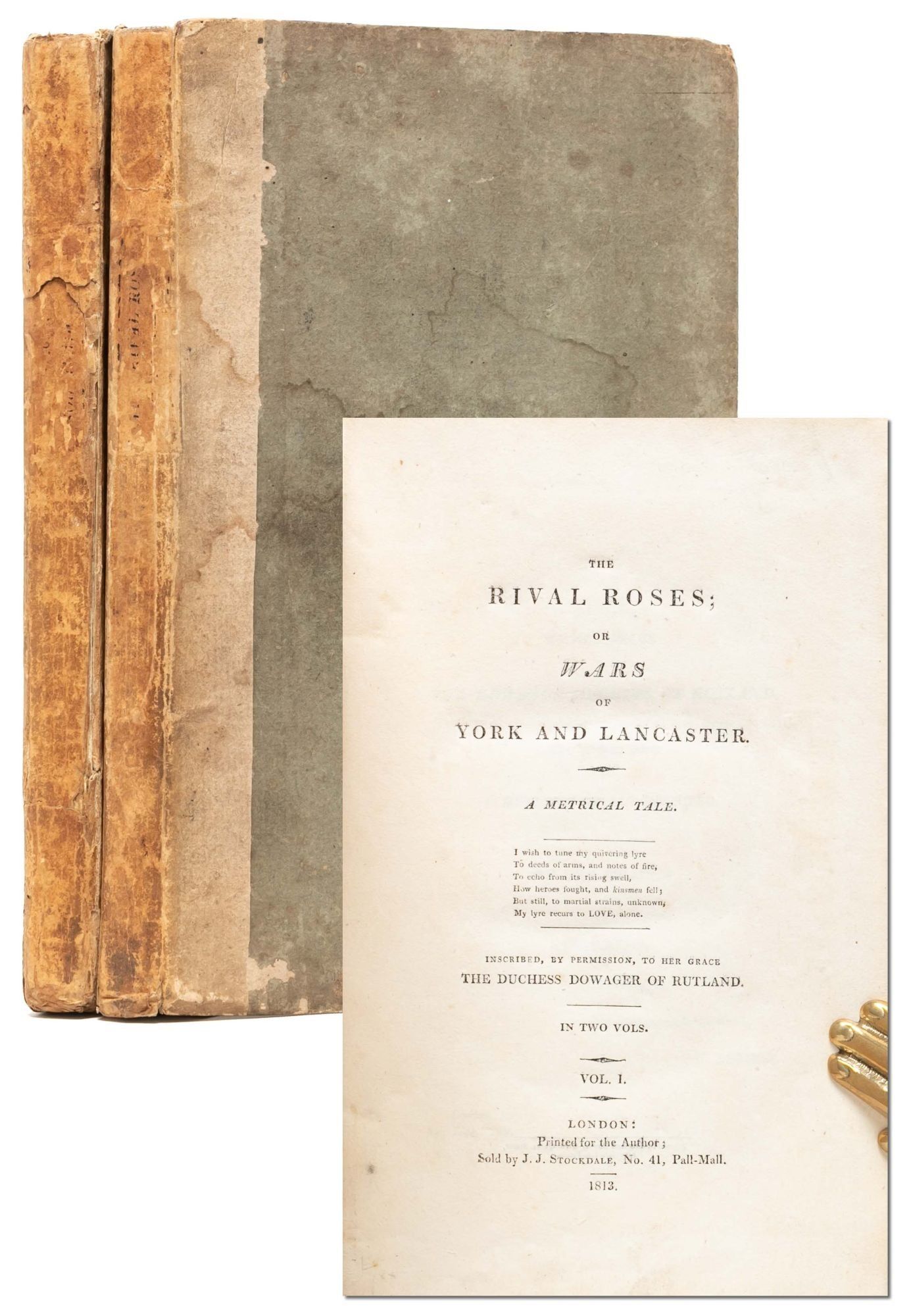 London: Printed for the author; Sold by J.J. Stockdale, 1813. First edition. Very Good. Octavo. [4], 209, [4, ads]; 163, [1, errata], 8 [publisher's catalogue] pp. Original drab boards with cream paper spine. Soiling to boards. Paper spine labels mostly rubbed away. Volume one lacks front free endpaper. Edges untrimmed. Remarkably clean and bright throughout. A Very Good, fresh copy of a scarce book.