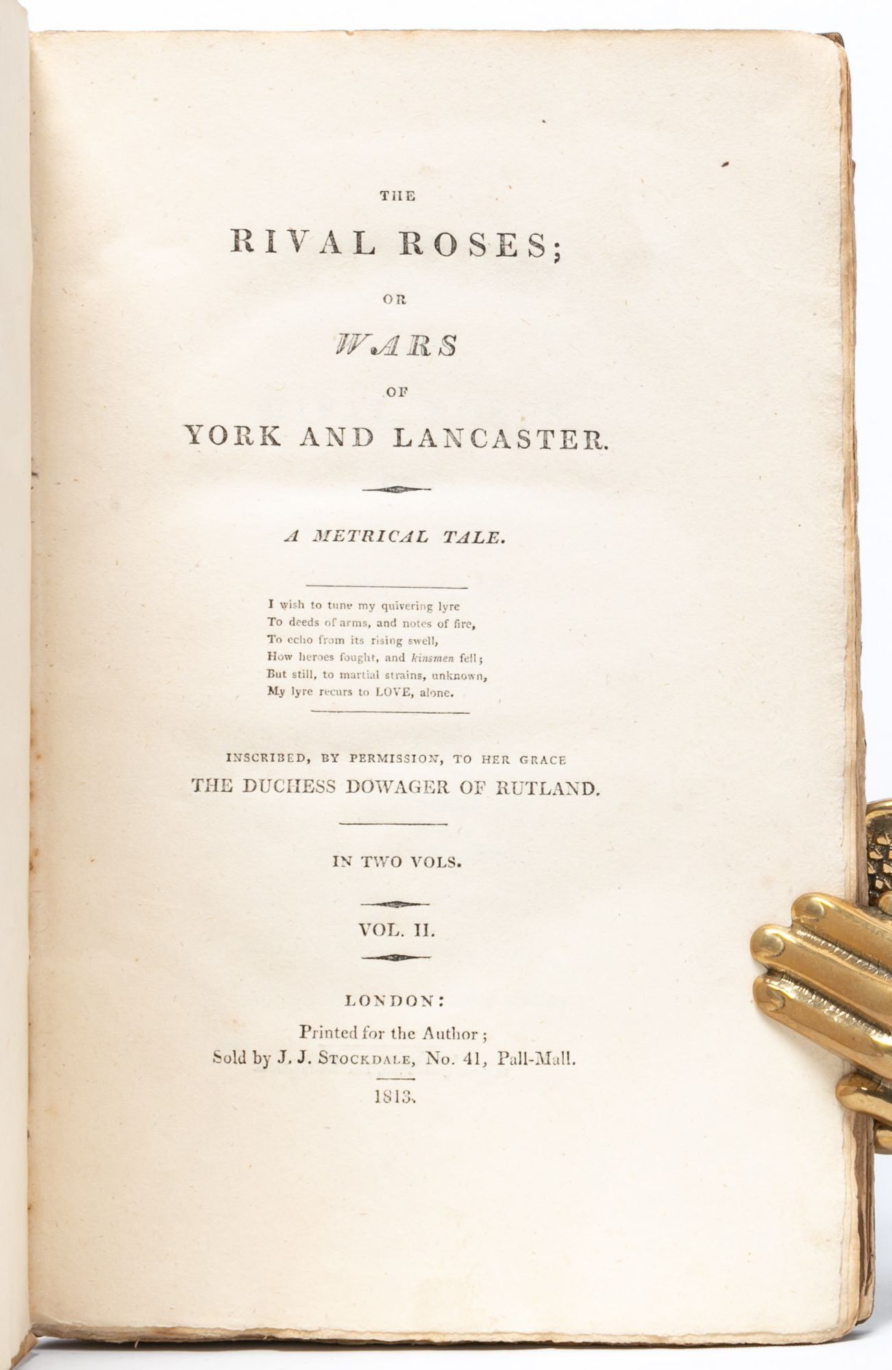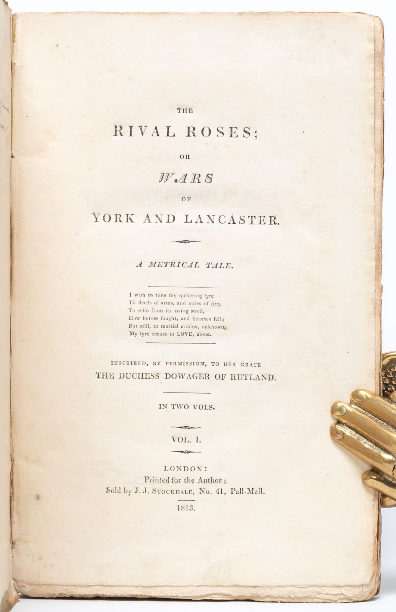 We could not locate much information on Eliza S. Francis. Her only other published work seems to have been the narrative poem Sir Wilibert de Waverley, or, The bridal eve (1809), which was "intended as a sequel to Mr. Coleridge's fragmentary tale, entitled Love." She clearly took a somewhat scholarly (or at least genuinely historical) approach to her fiction, however: The Rival Roses demonstrates her desire to combine narrative flair with fact and commentary. Very Good.
