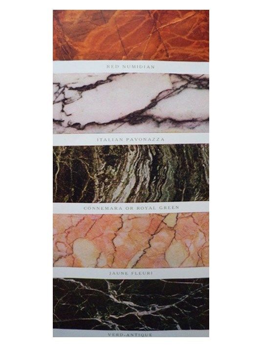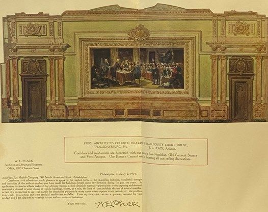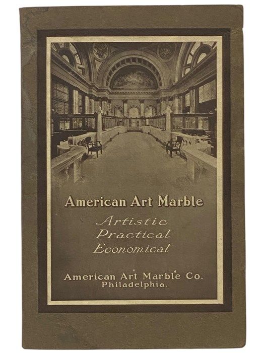 Philadelphia: American Art Marble Co, 1909. Soft Cover. Very Good. Light stain to bottom margin of front wrapper and a few pages. 1909 Soft Cover. 60 pp. Includes color frontispiece, two-page color image of Blair County Court House, and numerous black-and-white photographs showing the uses and advantages of American Art Marble, with examples from throughout the United States.