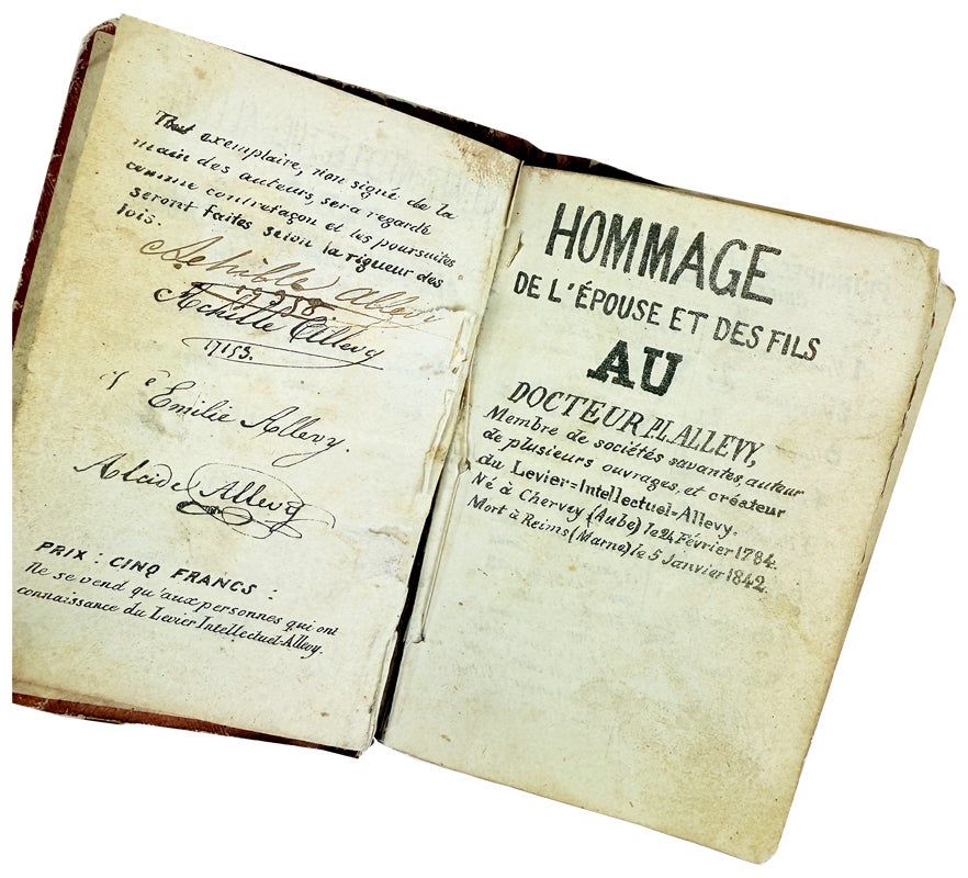 Levier-Intellectuel-Allevy. Dedie aux peuples du XIXe Siècle. Nouvel enseignement applicable a toutes les sciences [Signed by Achille Allevy]