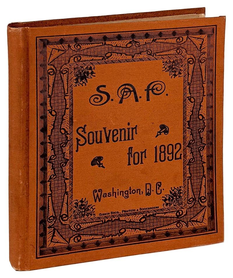 Souvenir edition of this popular guide to Washington presented by the National Gardeners' Club to the members of the S.A.F. at their annual convention in DC, August 16-19th, 1892. The advertisements throughout are almost exclusively for members of the florist trade or exhibitors at the convention.