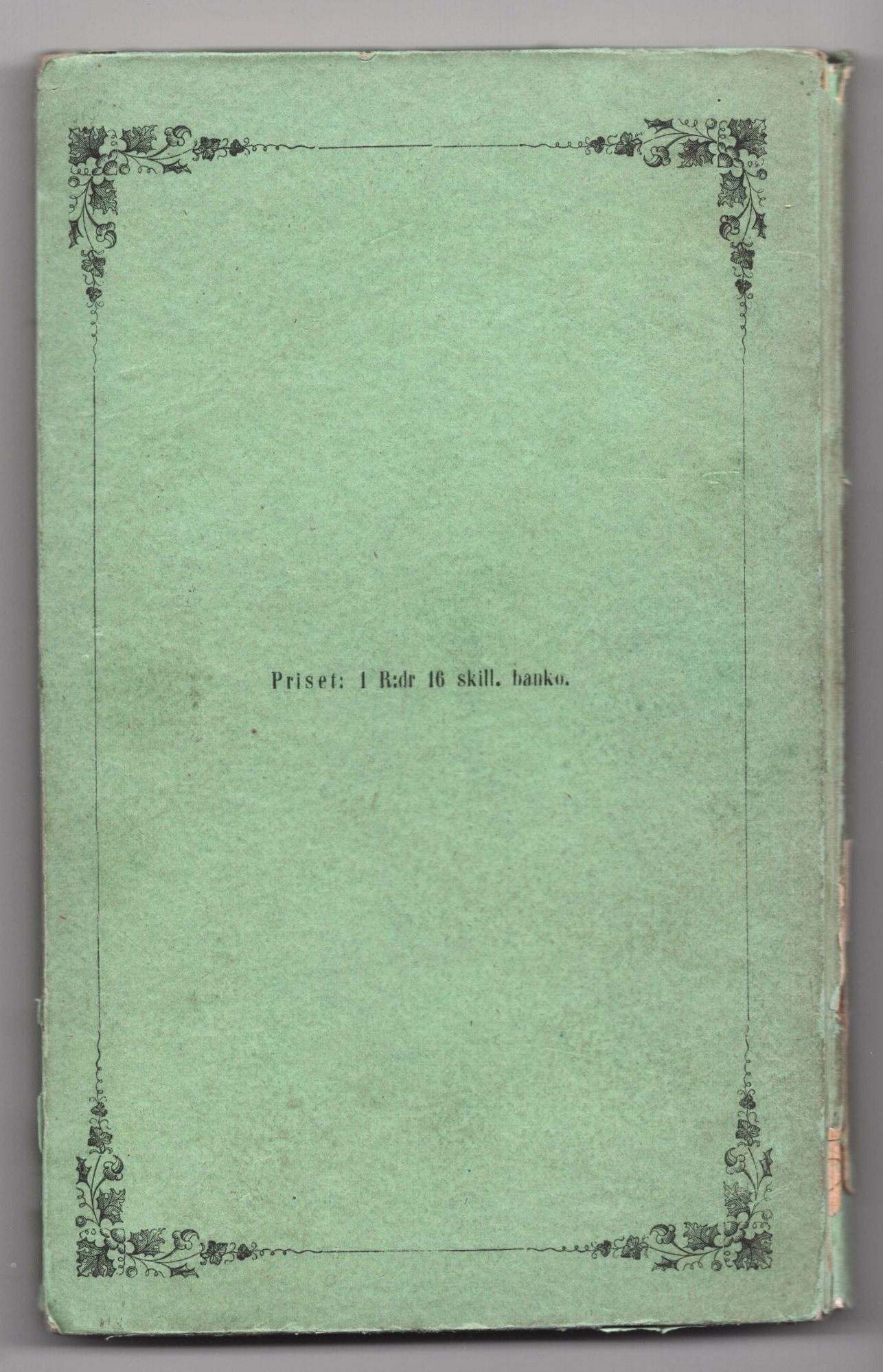 Stockholm: Tryckt A Aftonbladets Tryckeri, 1853. First Swedish Edition. Hardcover. Very Good. [vi], 187 pp. Duodecimo [19.5 cm]; light green paper covered boards with printed decorative borders, titling, and a nice pioneer illustration to the front board. Seven internal engravings/illustrations (one of which is full-page). Head and foot of backstrip lightly bumped and chipped with tiny losses, some minor splitting to the paper at the joints. Edges and corners bumped, occasionally lightly frayed. Some light age toning, offsetting, and faint finger soil (at margins) to the internal pages, which are otherwise clean and unmarked. A solid and square copy. See Flake 5192, which calls for "green illustrated wrappers" — here we have a paper covered hardbound variant of the binding, which is not mentioned in Flake.