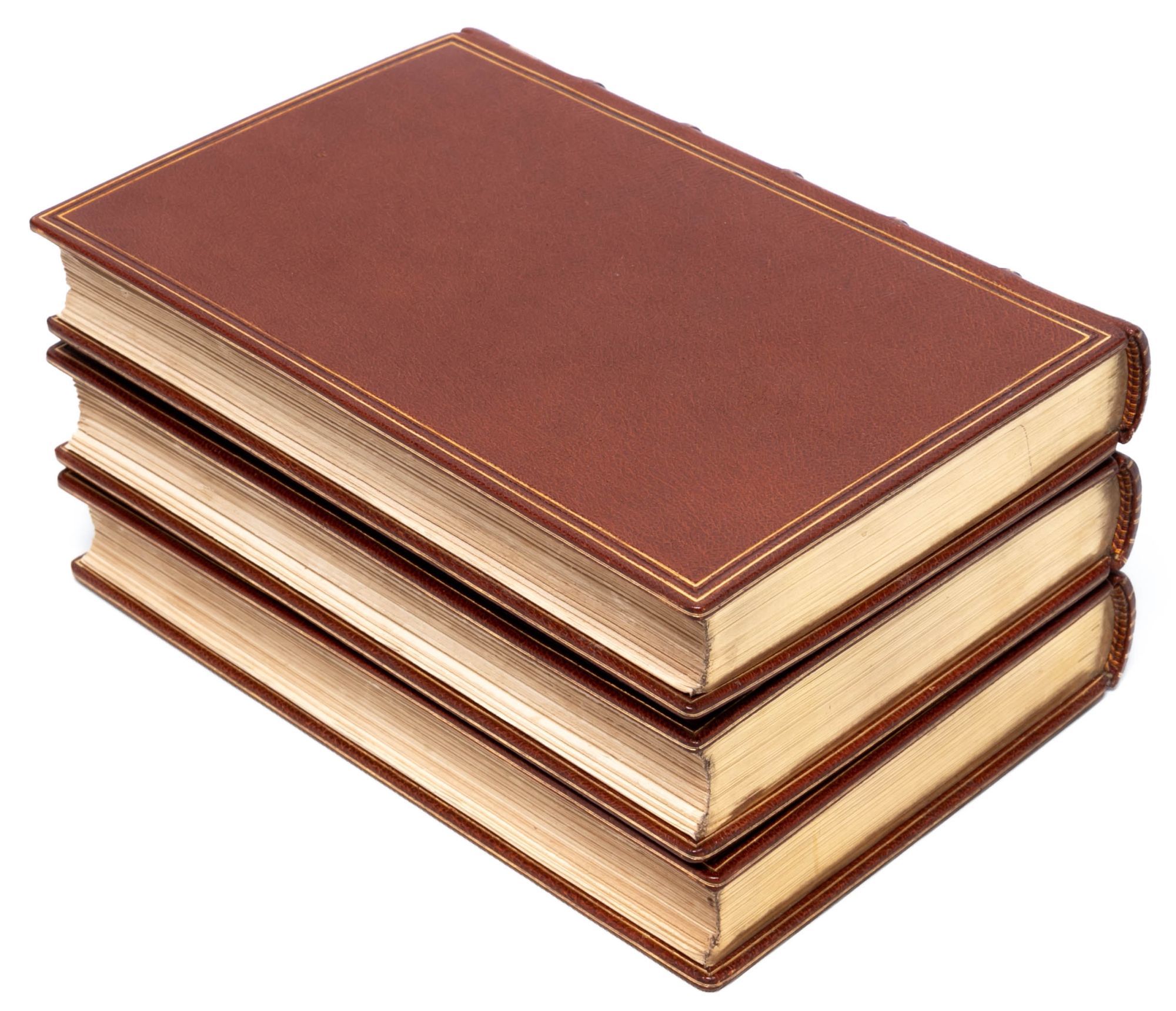 London: George Routledge and Sons, 1874. First UK edition. Fine. Finely bound by Zaehnsdorf in full brown morocco with double gilt rules on the boards and spine compartments. Top edges gilt, marbled end papers. A Fine copy, complete with all half-titles. Clean and fresh throughout. A few leaves in volume 3 a little bent at the lower margin. Otherwise an exceptional copy inside and out.