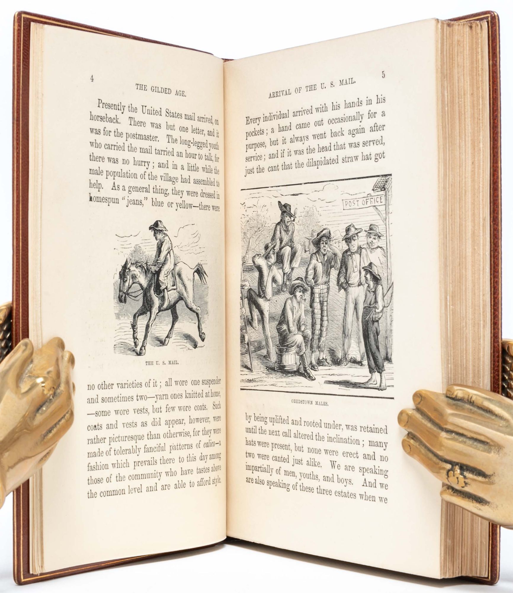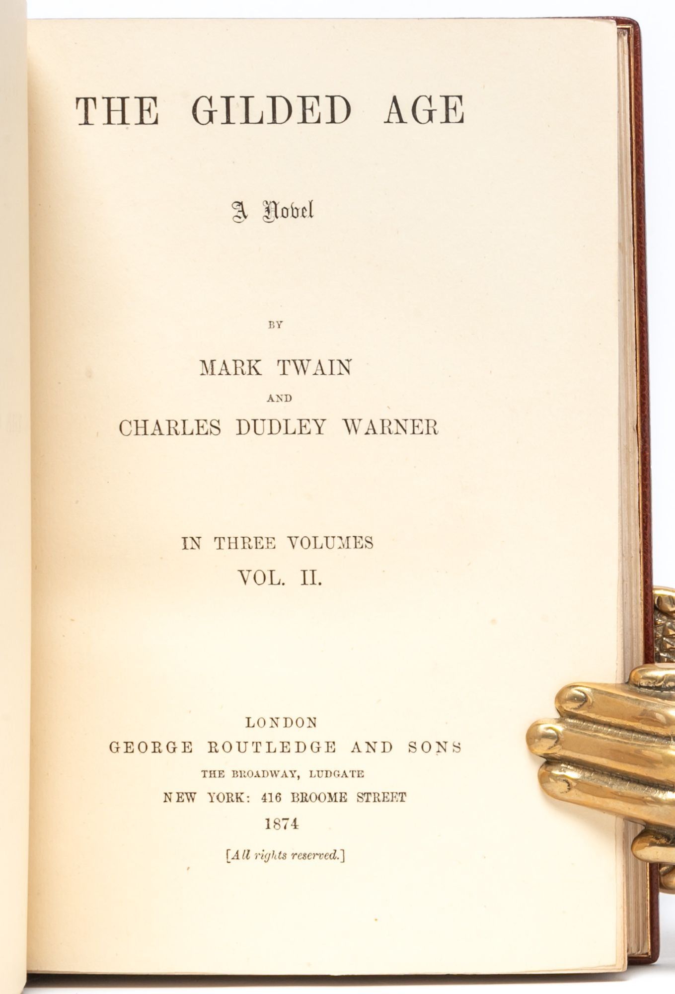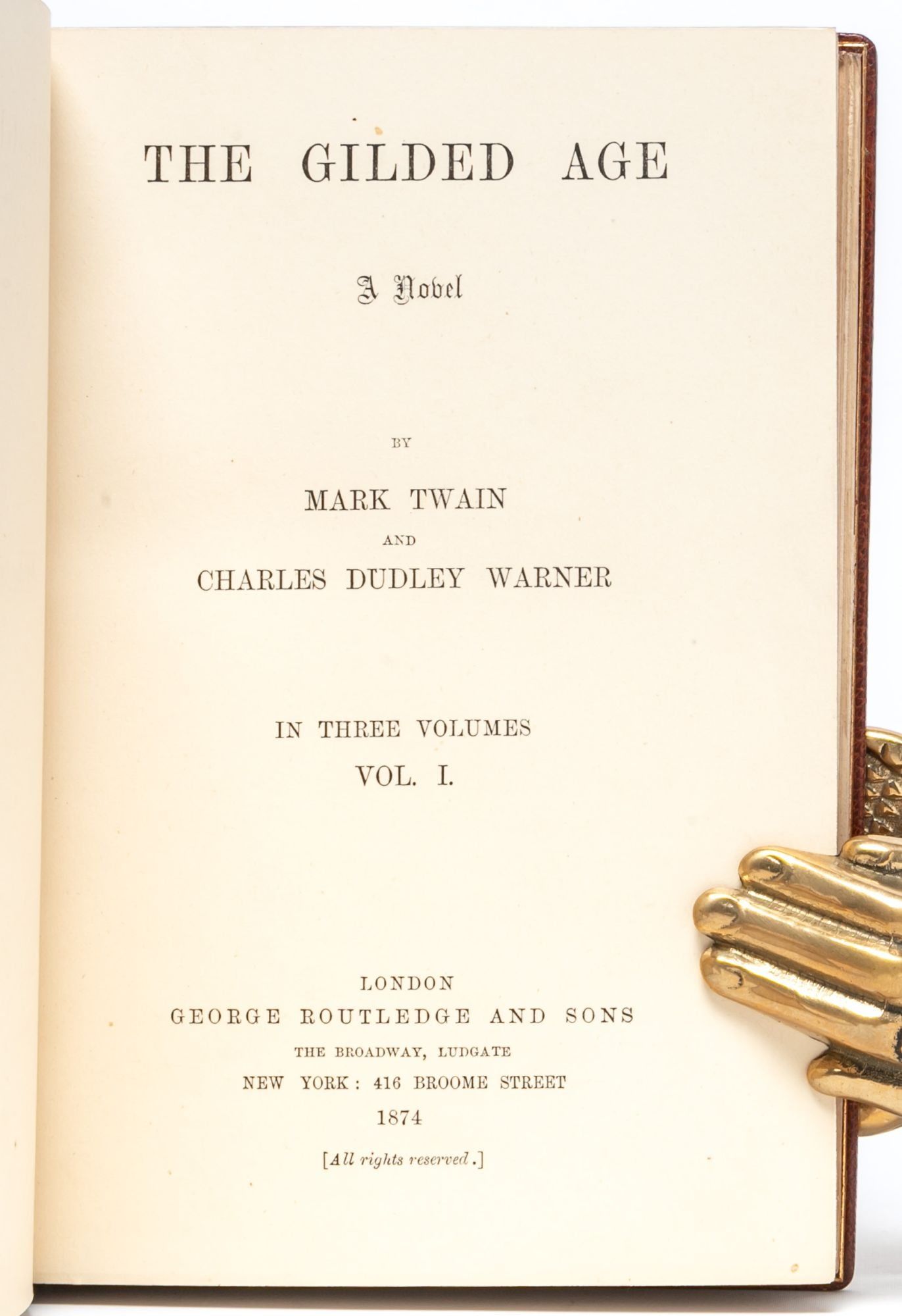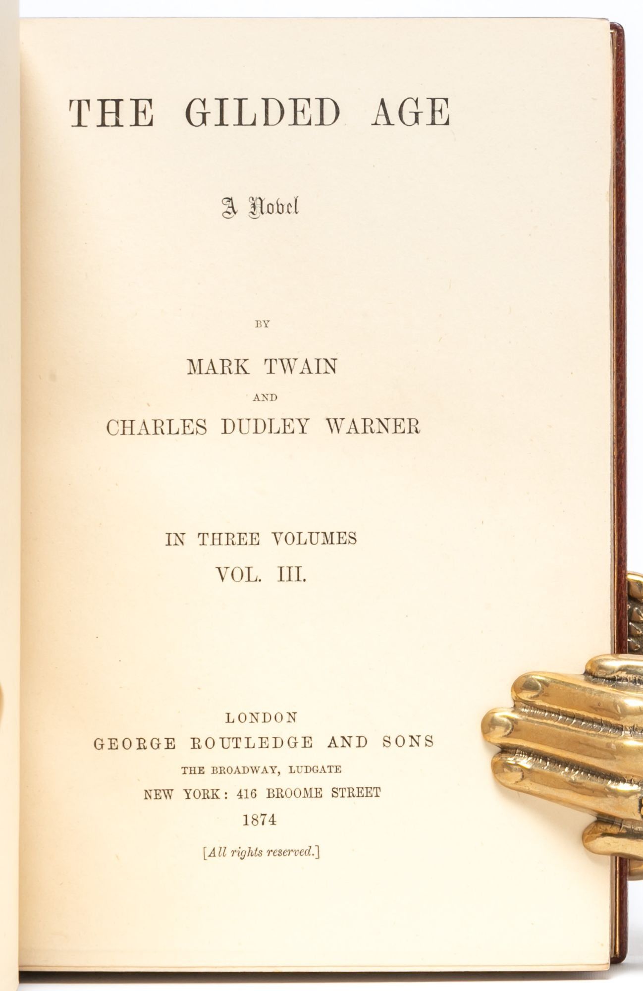 "The Gilded Age, a period of gross materialism and blatant political corruption in US history during the 1870s, gave rise to important novels of social and political criticism. The period takes its name from the earliest of these, The Gilded Age, written by Mark Twain in collaboration with Charles Dudley Warner. The novel gives a vivid and accurate description of Washington, DC and is peopled with caricatures of many leading figures of the day, including greedy industrialists and corrupt politicians" (Britannica). Among these notable "robber barons" were, recognizably, John D. Rockefeller, Andrew Carnegie, Cornelius Vanderbilt, and J.P. Morgan. Fine.