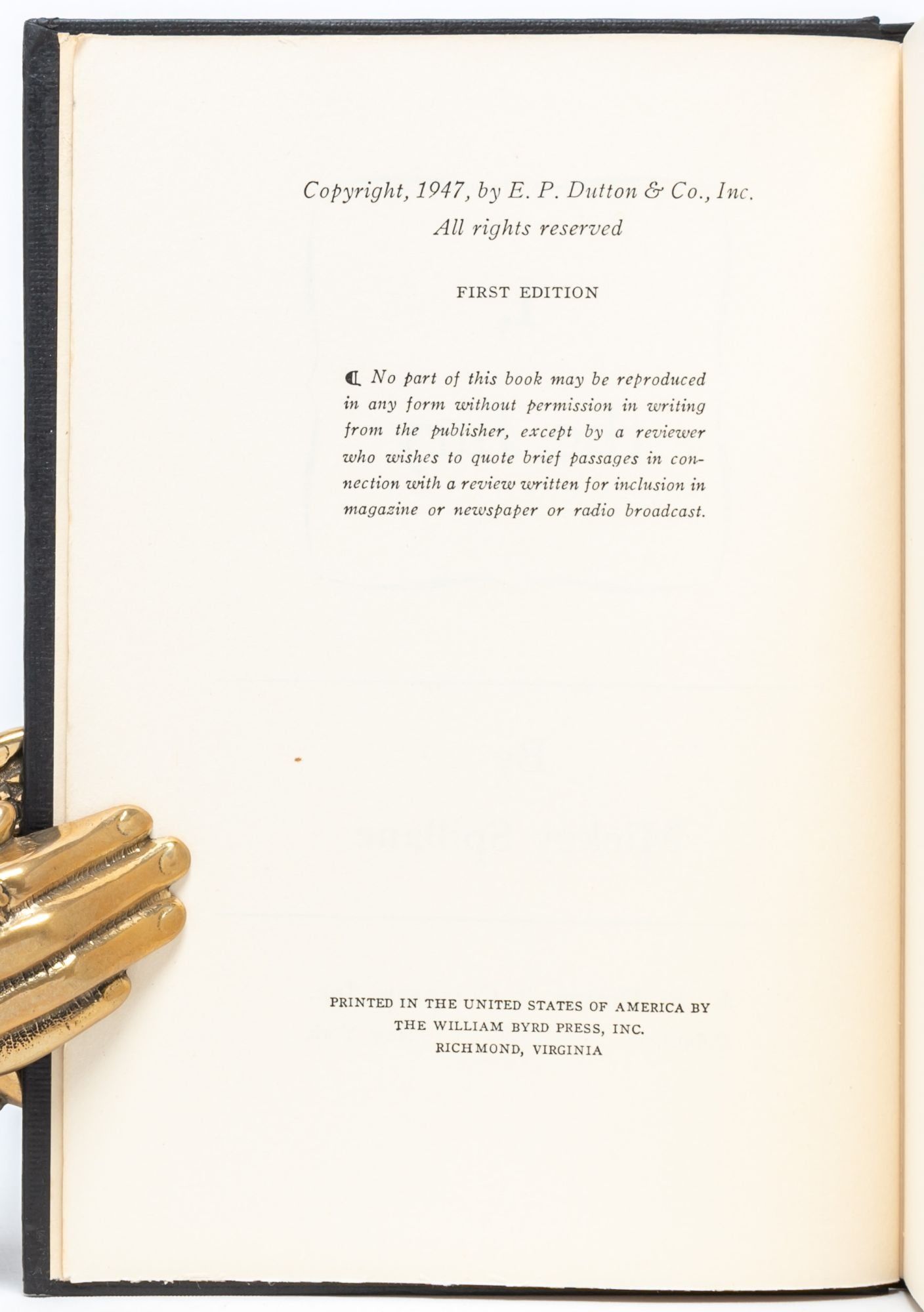 New York: E.P. Dutton & Company, 1947. First edition. Fine/Near Fine. Publisher's black boards titled in red. Small midcentury bookplate to upper pastedown. Bright and clean dust jacket with just a bit of crinkling to top edge. A Fine and attractive copy in Near Fine jacket.