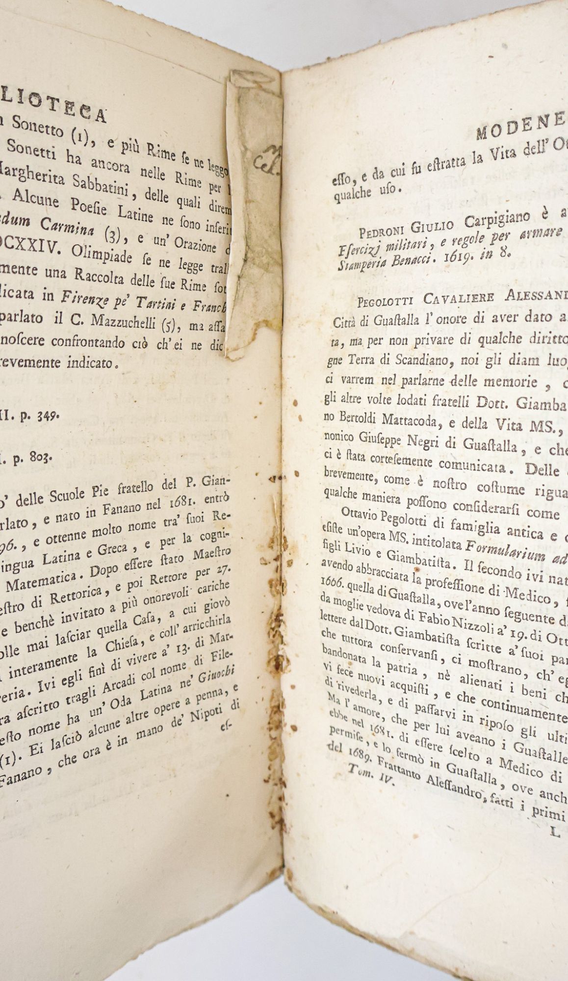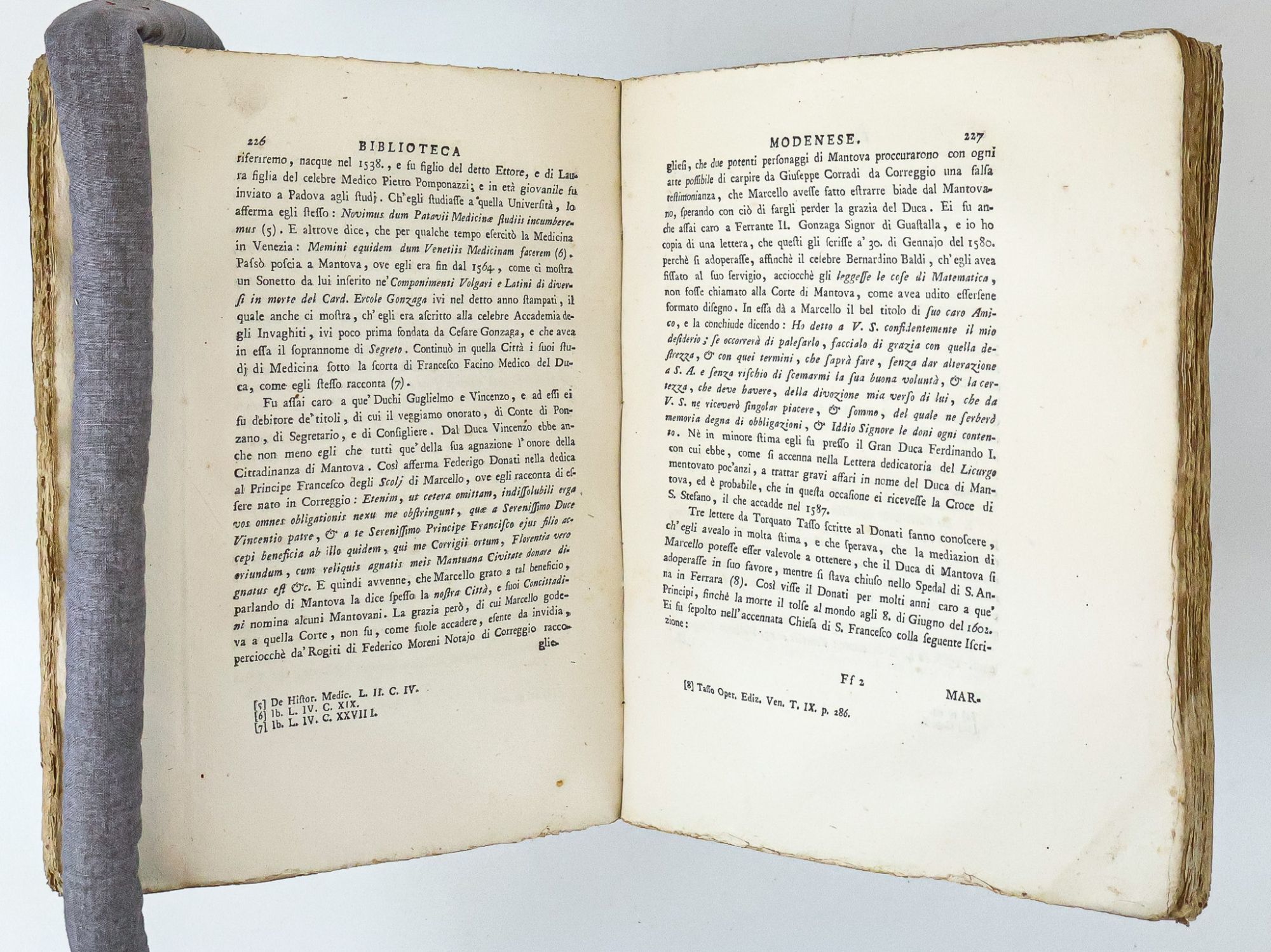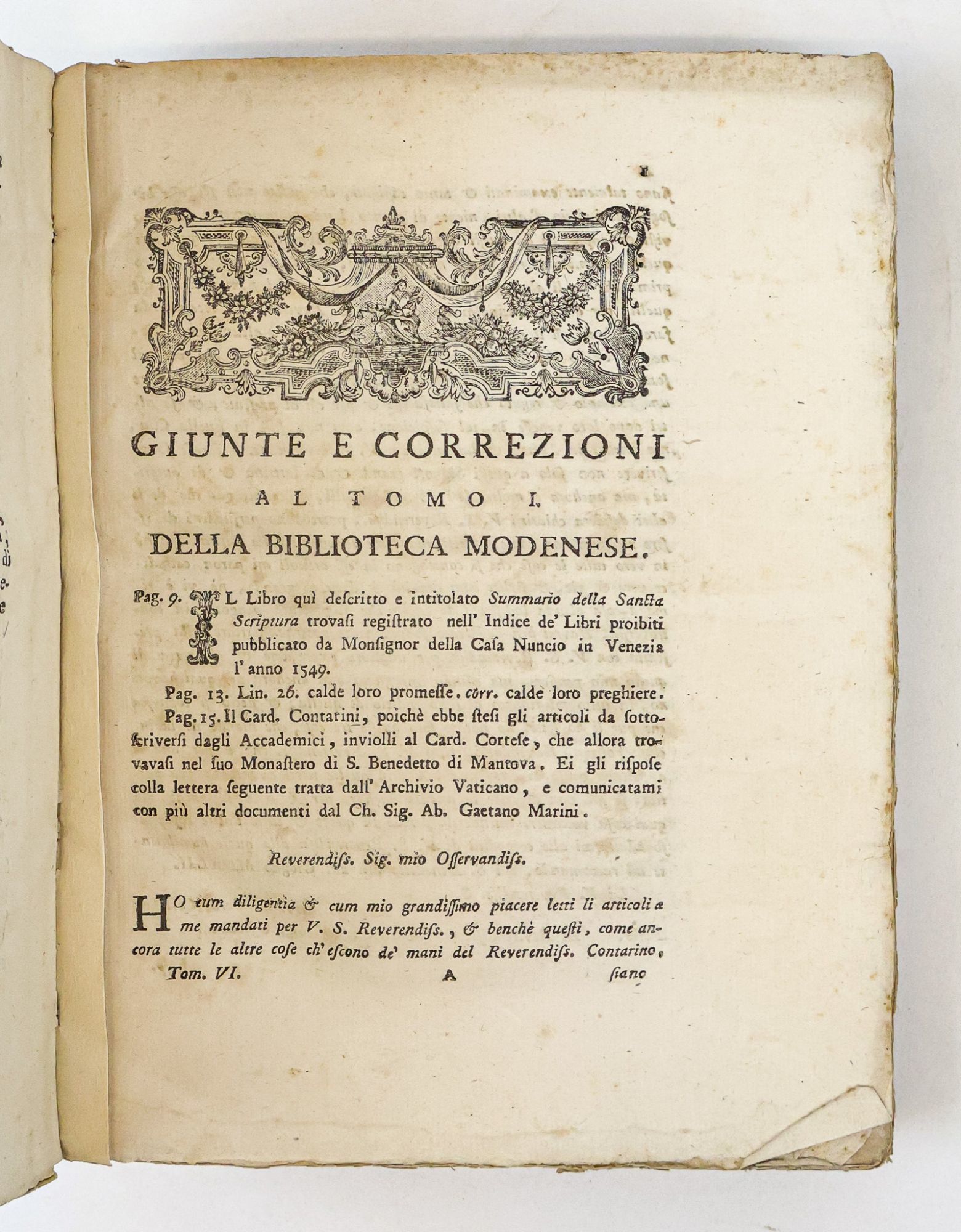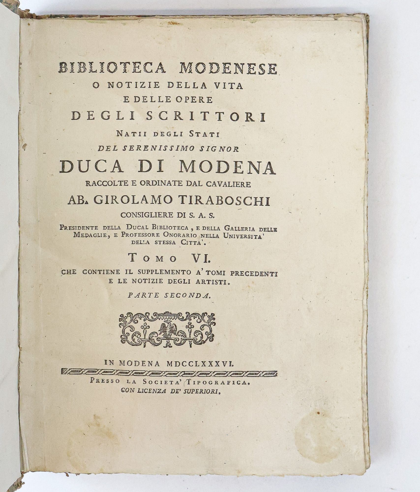 BIBLIOTECA MODENESE, NOTIZIE DELLA VITA E DELLE OPERE DEGLI SCRITTORI NATII DEGLI STATI DEL SERENISSIMO SIGNOR DUCA DI MODENA [Six Parts in Seven Volumes]