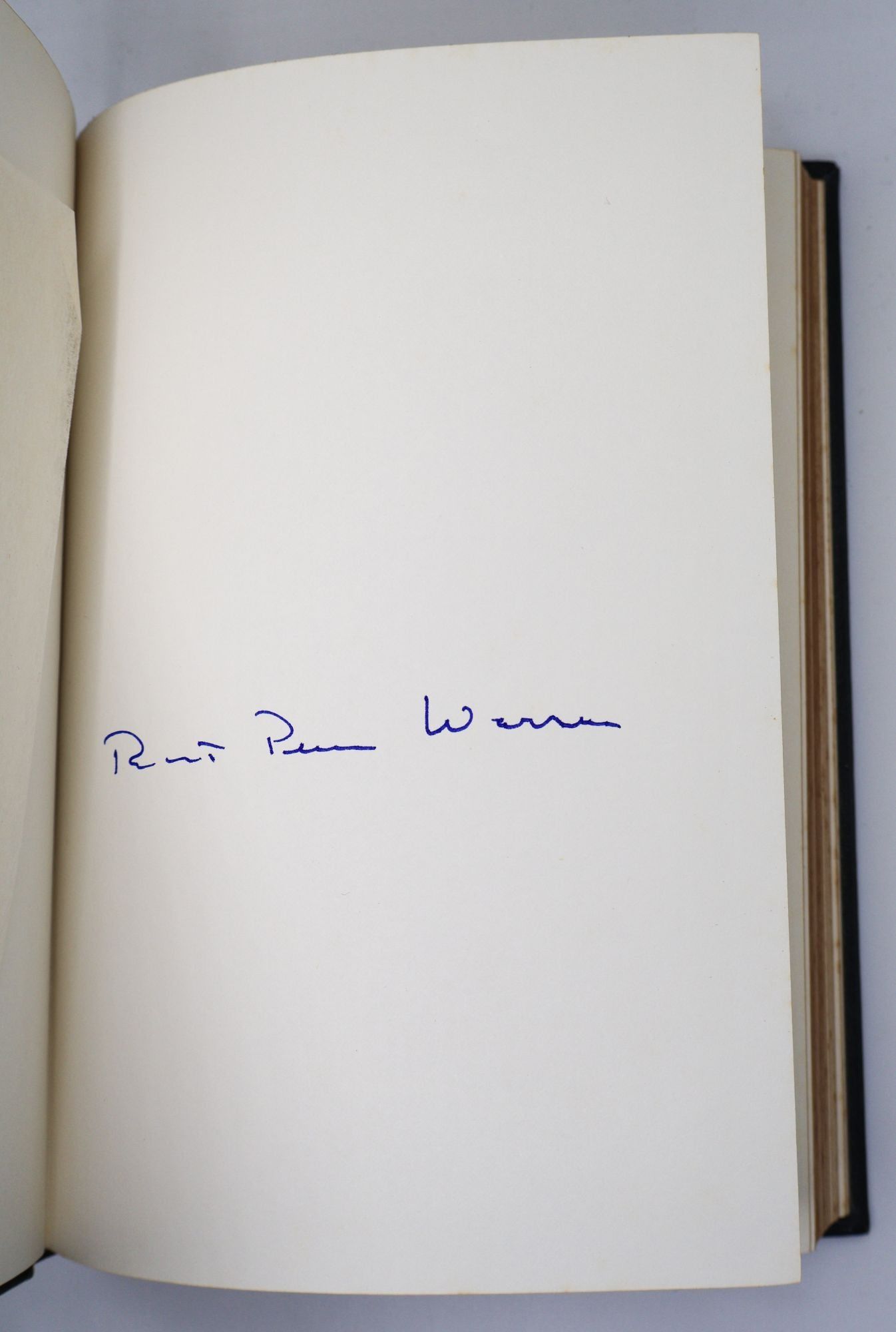Signed flat by Warren to tipped-in signature page.