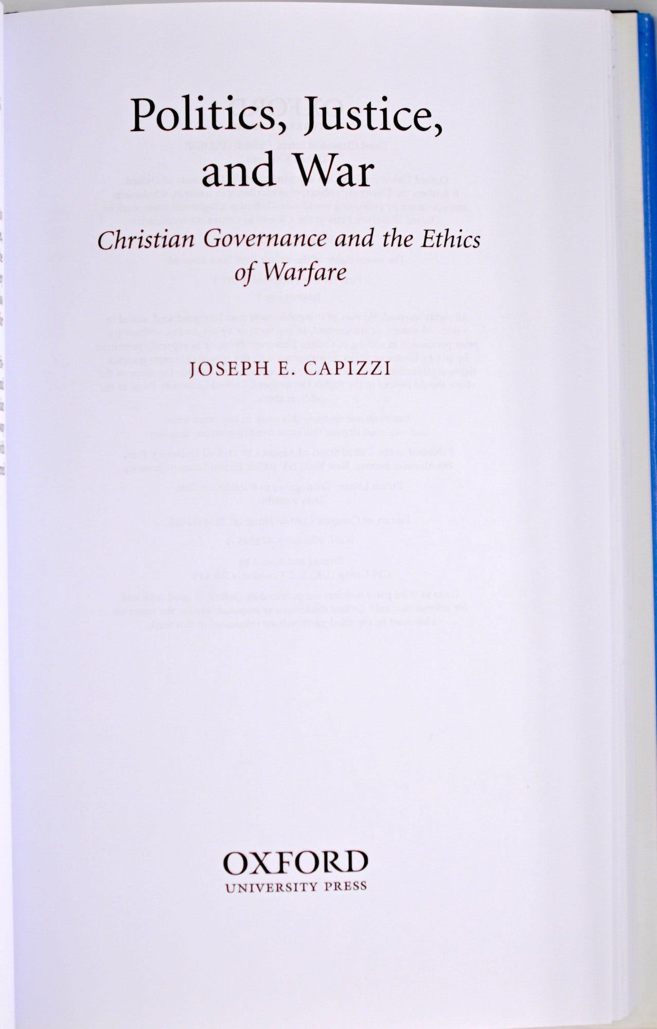 [PHILOSOPHY] POLITICS, JUSTICE AND WAR. CHRISTIAN GOVERNANCE AND THE ETHICS OF WARFARE