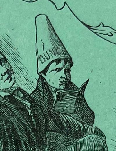 Copy Book of Marie E. Merrill with Entertaining Cover Design -- Cheeky School Boys, Dunce Cap