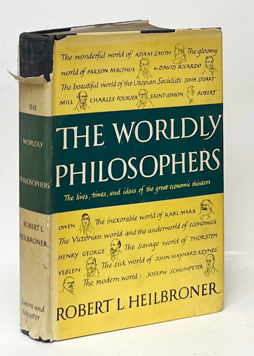 New York: Simon and Schuster, 1953. First Edition. Hardcover. Near Fine/Good. Near Fine in a Good jacket, unclipped ($5.00), faded at the spine and with a chip to the top inch, bumped and with some short tears and shallow chips throughout, soiled at the back panel. Black cloth, bumped at the corners, with a green ink panel and gilt lettering on the spine and front board. Square and firmly bound with a black top stain, clean internally. Heilbroner's best-seller about the various "academic scribblers" that have shaped economic theory since Adam Smith.