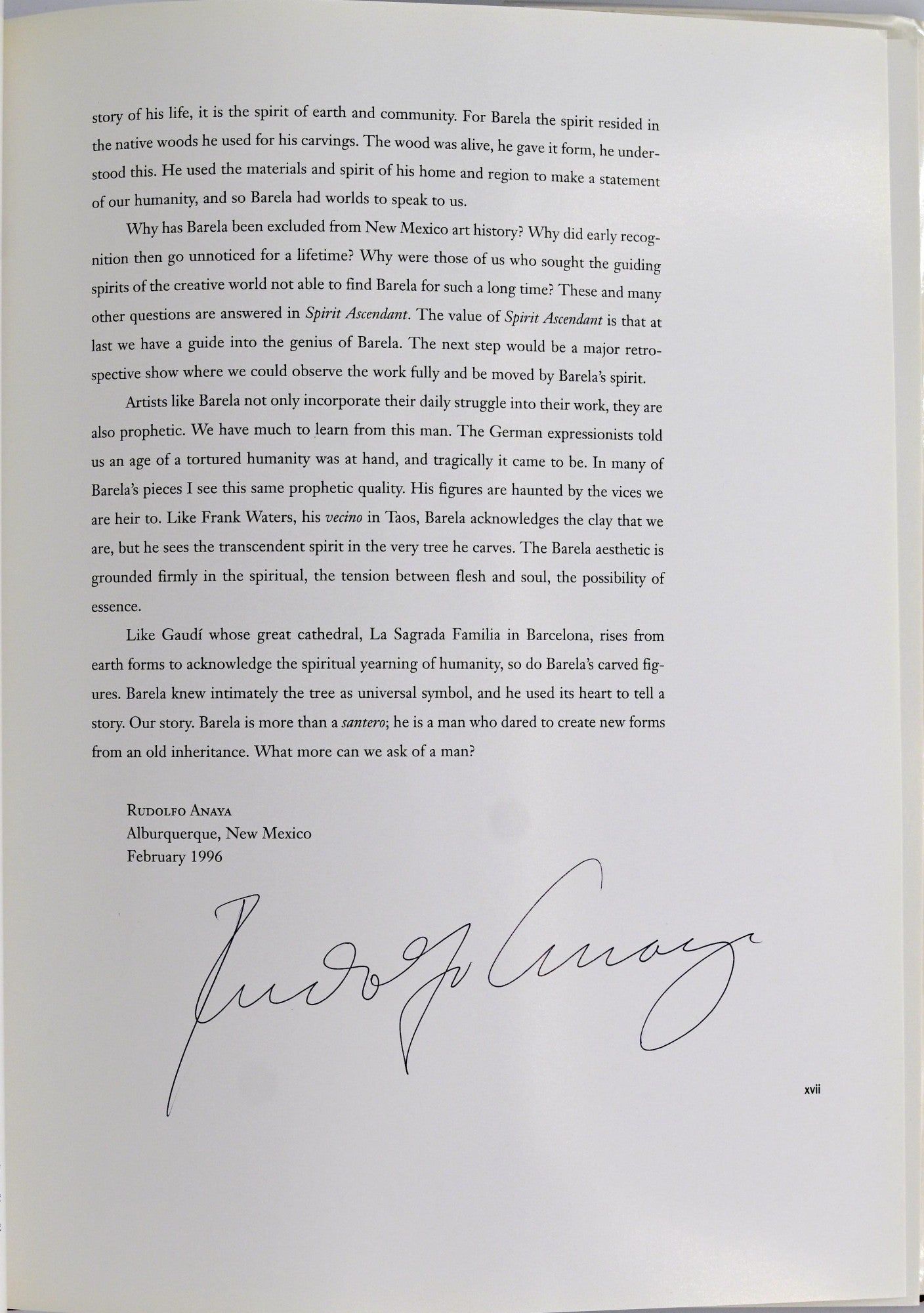 Santa Fe: Red Crane Books, 1996. First Edition. Hard Cover. Very Good+ binding/Near Fine dust jacket. 4to; in the publisher’s terra cotta cloth binding; with titling on the upper board in blind and on the spine in silver in dustjacket protected by a mylar brodart; with both color and black and white photographic illustrations throughout.~~Signed on the title page by Edward Gonzales.~~This copy was purchased by us directly from Gary W. Gallagher’s personal library with a card signed by Mr. Gallagher laid in.~~Featuring the works of Patrocino Barela, a self taught wood carver acclaimed by Time magazine as “discovery of the year” in 1936 Mr. Barela was first Mexican-American artist to attain national attention. Very Good+ binding / Near Fine dust jacket.