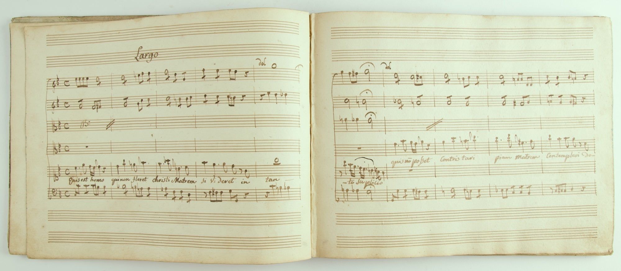 Binding somewhat worn, rubbed, and bumped. Slightly worn internally; occasional minor soiling and small stains to blank margins; lower outer corners of final leaves tender, with some minor tears and losses. "The Stabat mater, first published in London in 1749, became the most frequently printed single work in the 18th century. It was also circulated in many adaptations, including one by Bach (as Tilge, Höchster, meine Sünden). ...